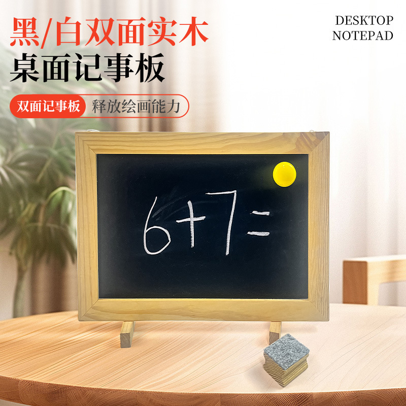 実木両面無磁性黒板児童画板画架セットdiy手書きメニュープレートデスクトップ立札