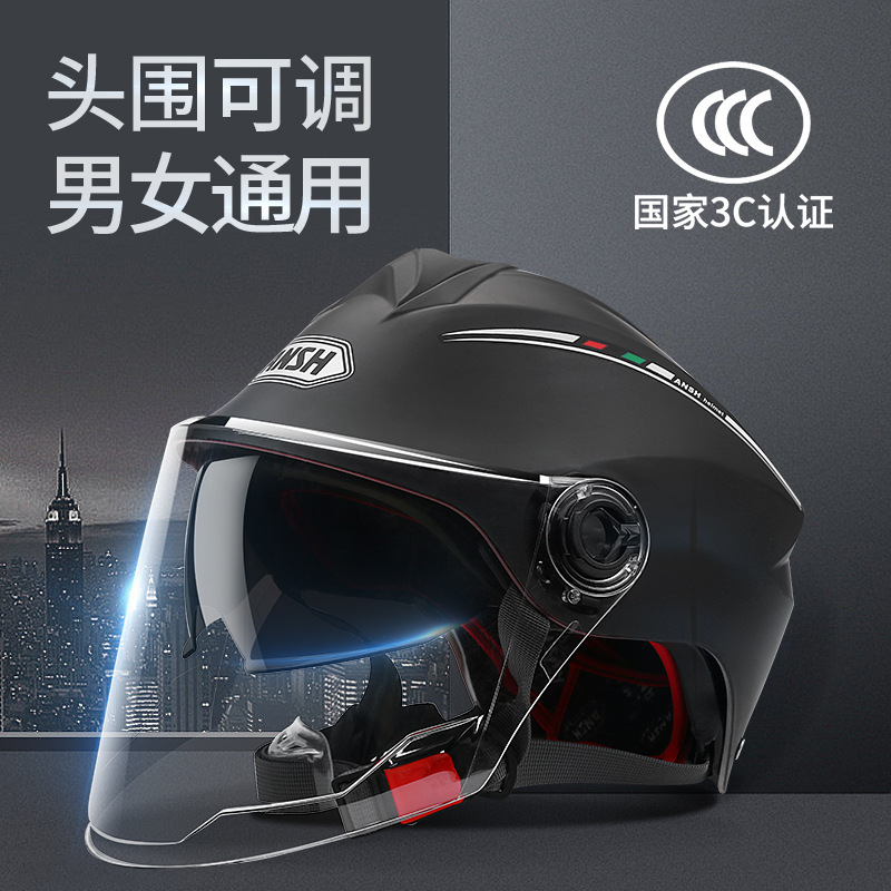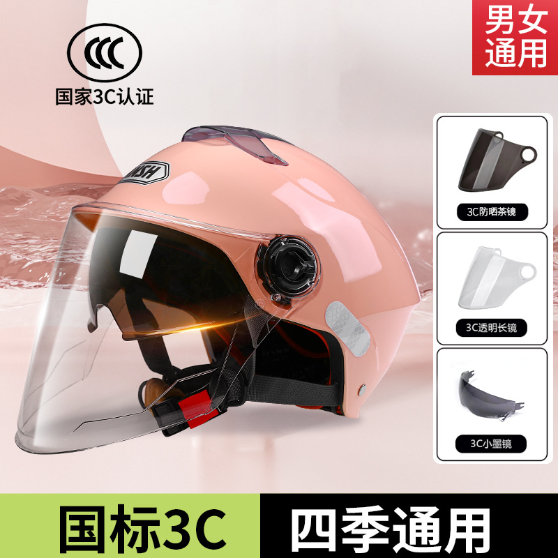 3C新国標オートバイ双レンズヘルメット男女通用四季電気自動車半ヘルメット夏清涼日焼け止めヘルメット