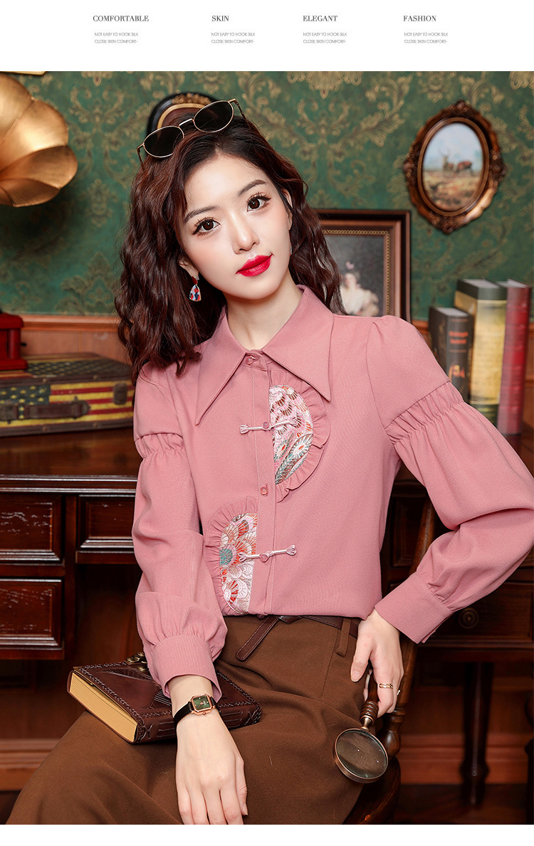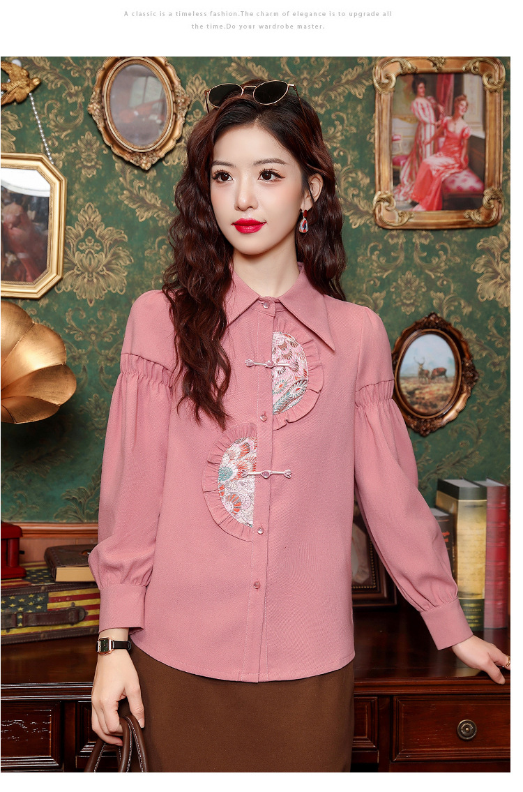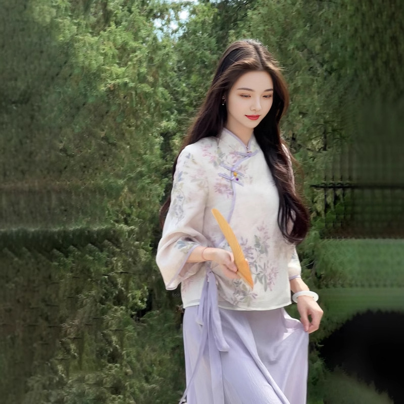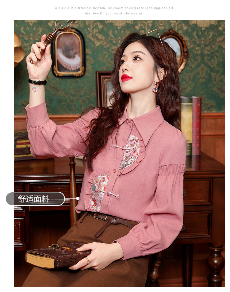 刺繍盤は国風のシフォンのシャツの婦人服の春の2024新型の春の服の新しい中国式の馬のスカートの上着の洋風を掛けます。