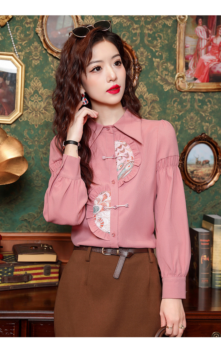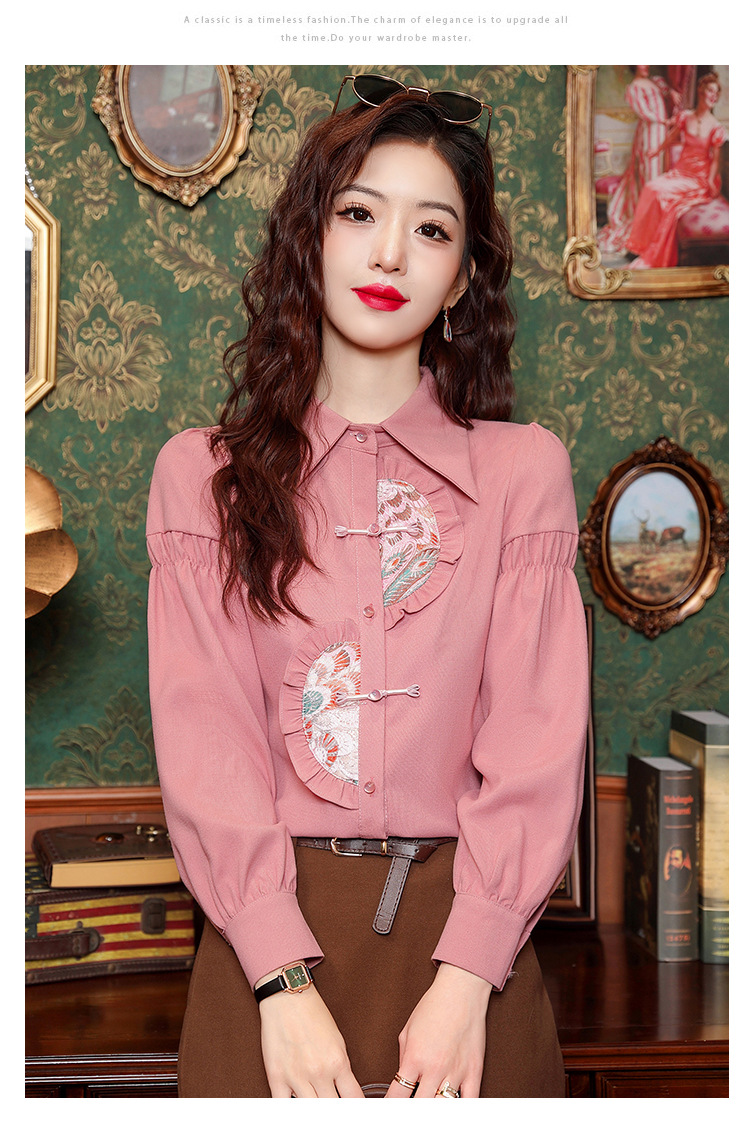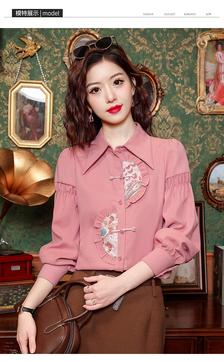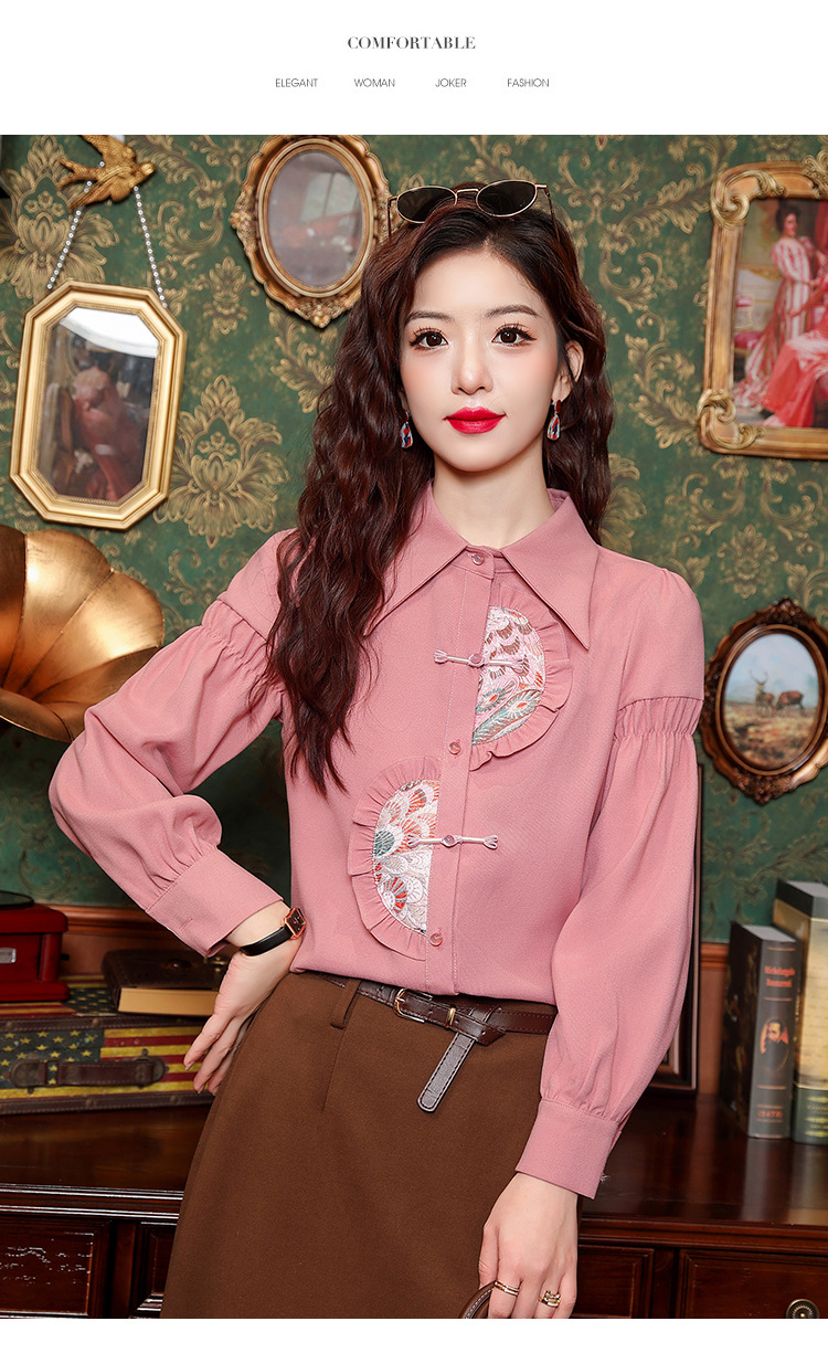 刺繍盤は国風のシフォンのシャツの婦人服の春の2024新型の春の服の新しい中国式の馬のスカートの上着の洋風を掛けます。