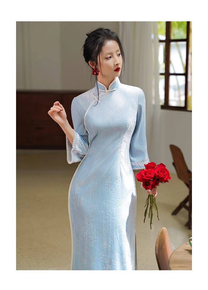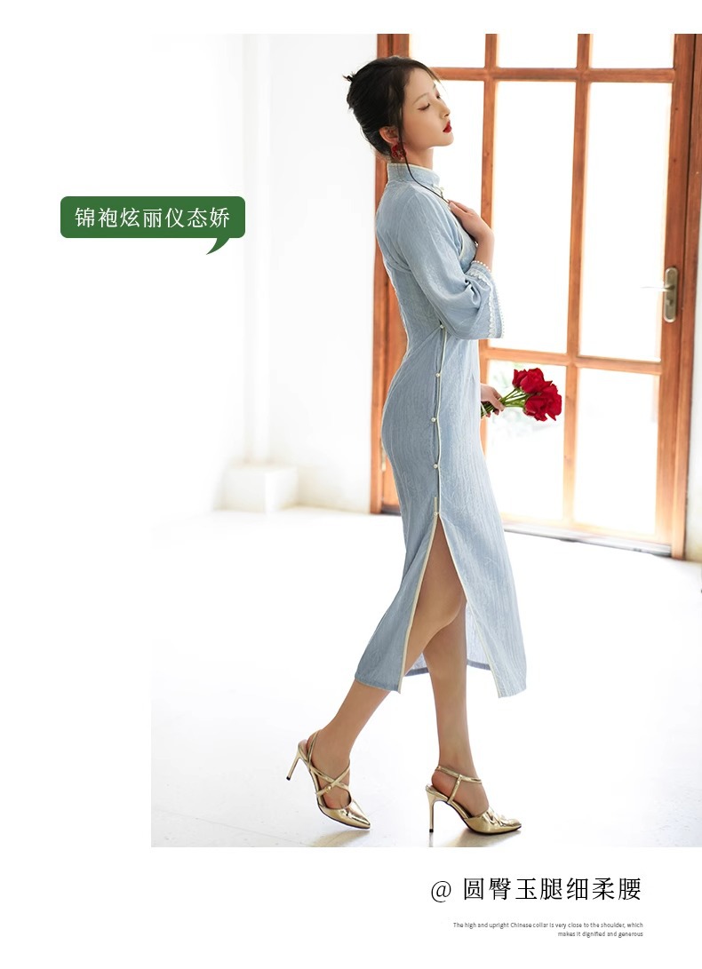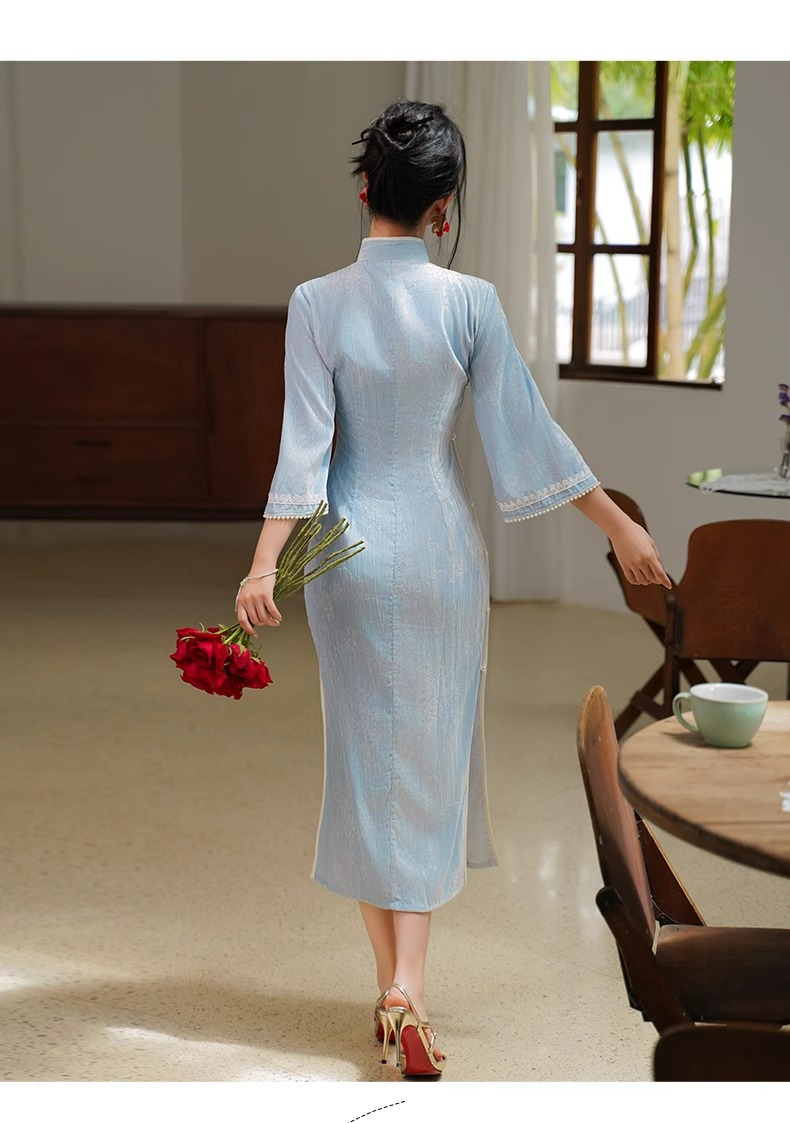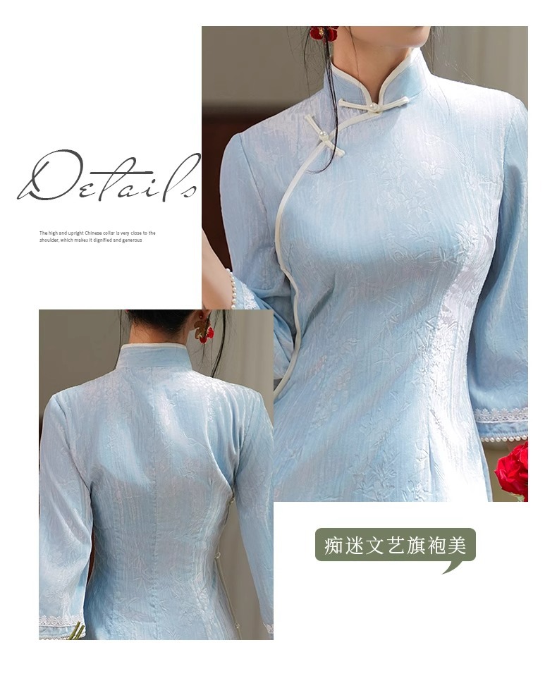 レトロ日常チャイナドレス2024新作小清新ブルー年会新中国式春夏新作シンプルワンピース