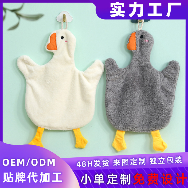 珊瑚绒卡通擦手挂式擦手巾新款宝宝大鹅企鹅小猪外贸巾加厚柔软