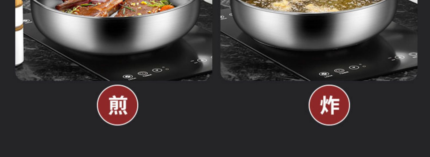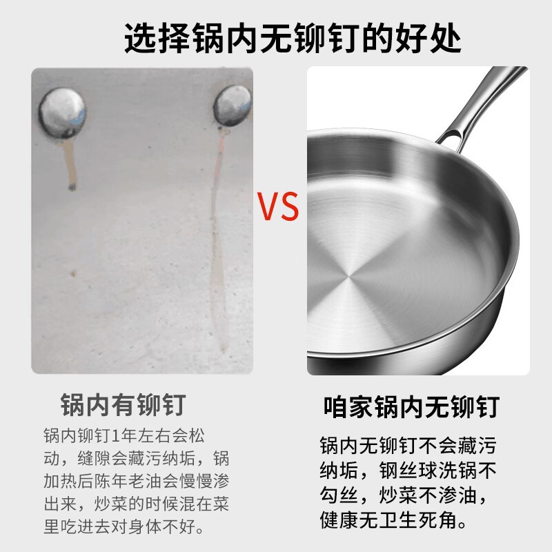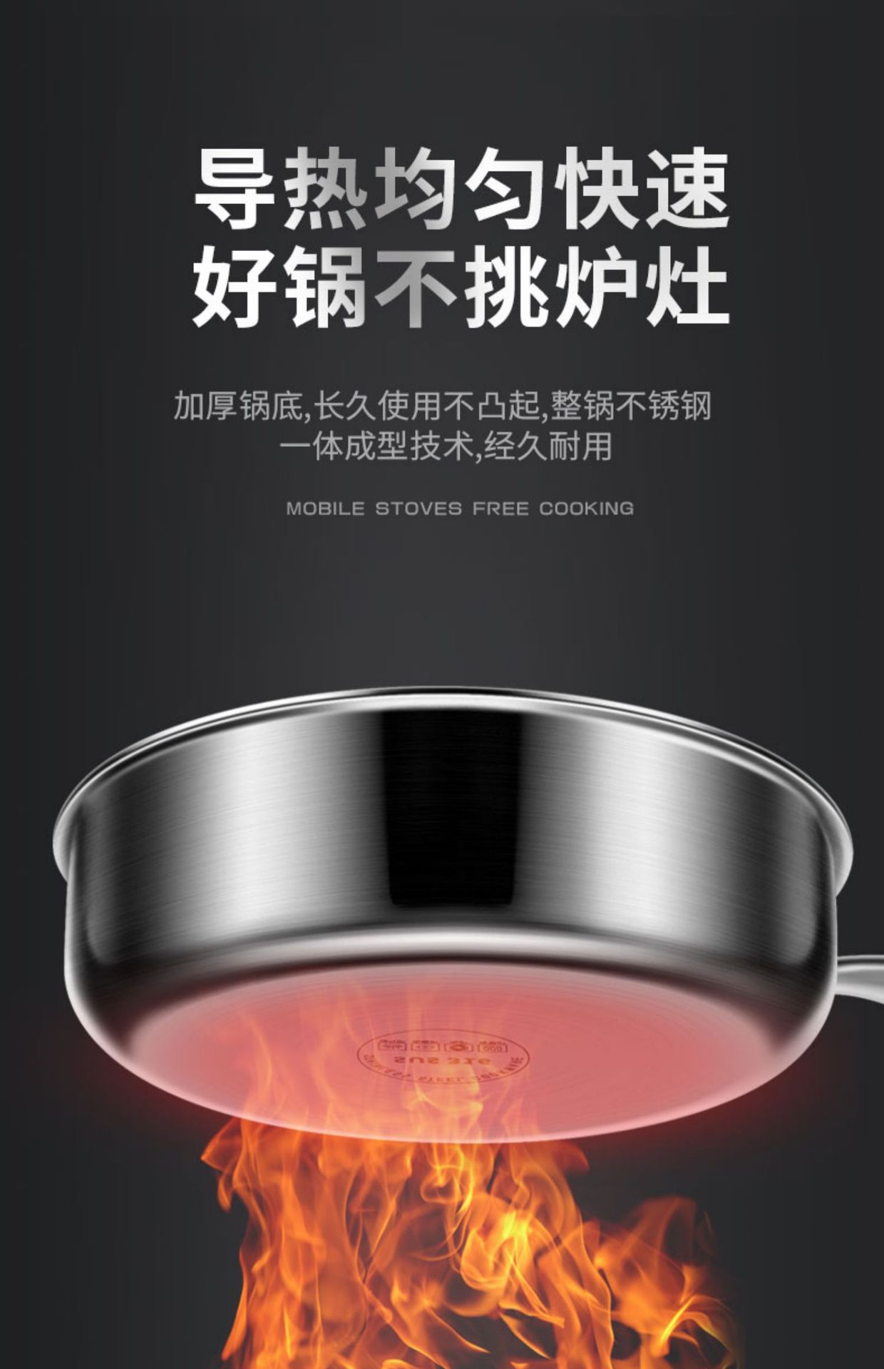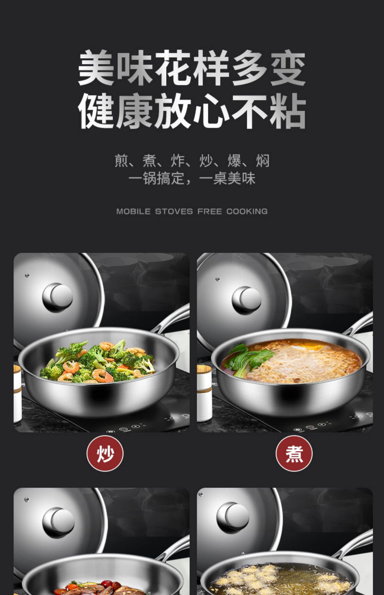 316不锈钢煎锅加厚三层钢无涂层平底锅家用不粘锅煎牛排专用电磁