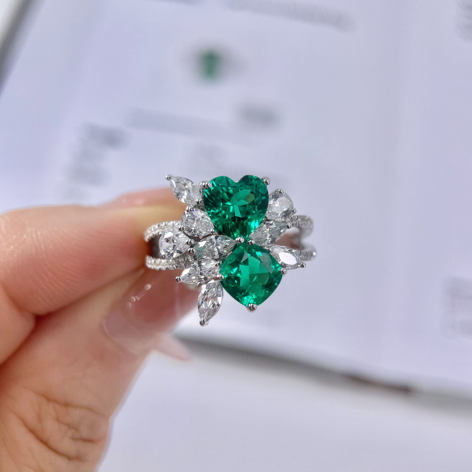 1.15ct秘境花園シリーズ高級デザインモデルグラデーション祖母緑育成宝石指輪復古贅沢