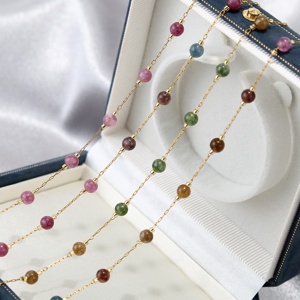 ステンレス丸石ビーズチェーン手串ネックレス混色石セーターチェーンチタン鋼diyアクセサリーアクセサリー