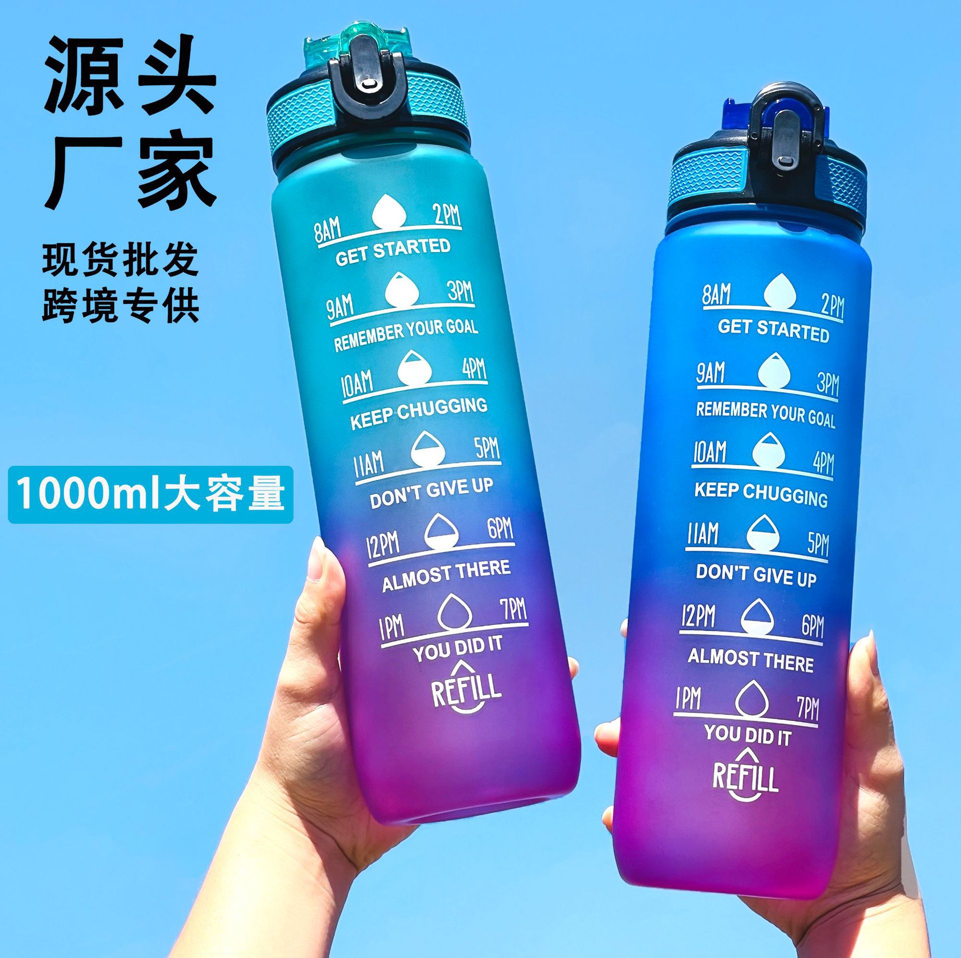 Amazon 1L 大容量ウォーターカップ直飲みグラデーションスペースカップクロスボーダープラスチック屋外ポータブルスケールウォーターカップ