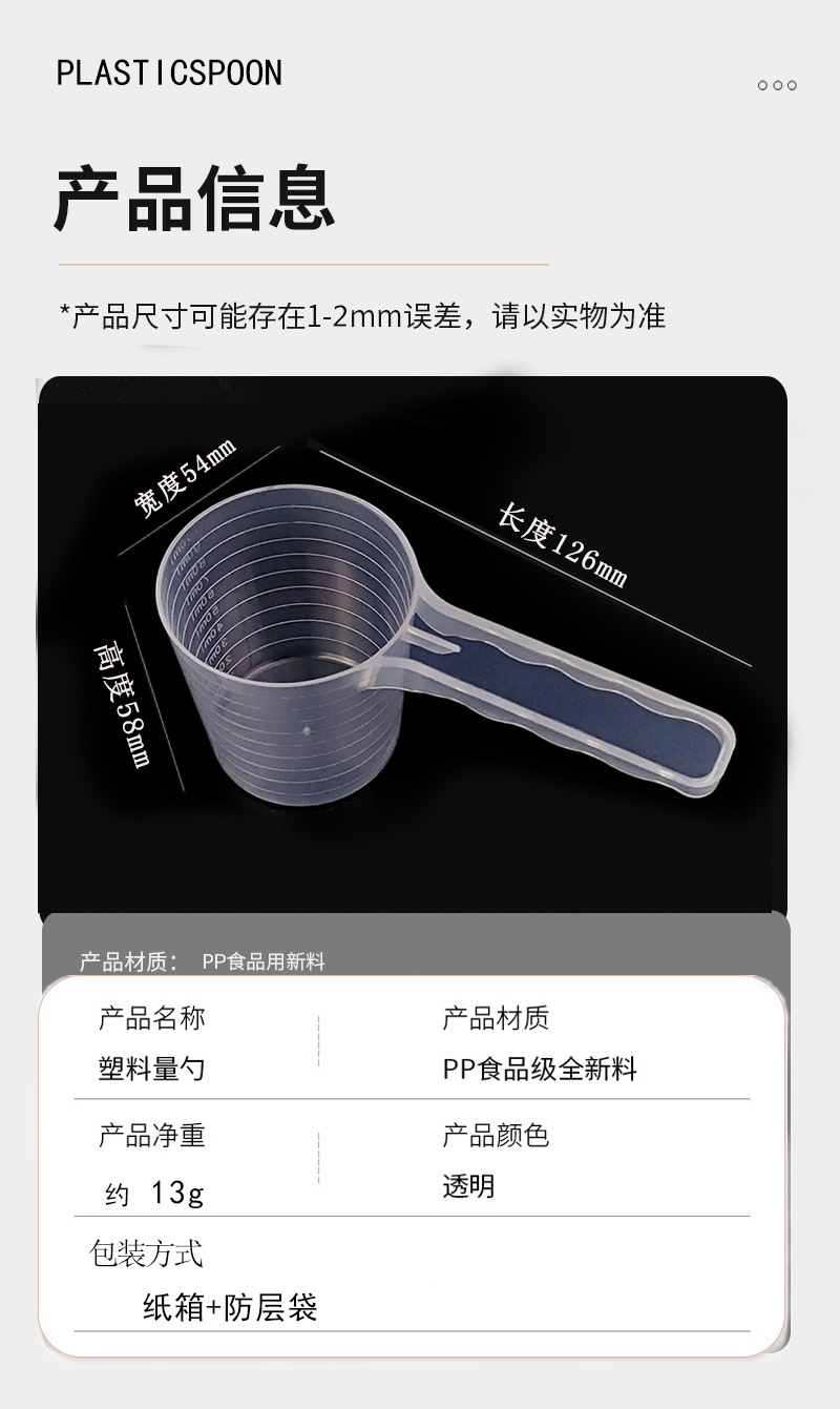 食品級pp新型材料固体両用プラスチックスプーンタンパク質粉高透明スケールスプーンプラスチック計量スプーン直供