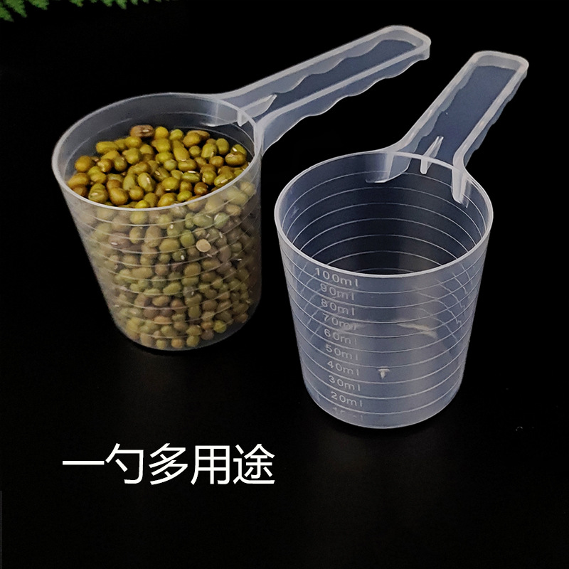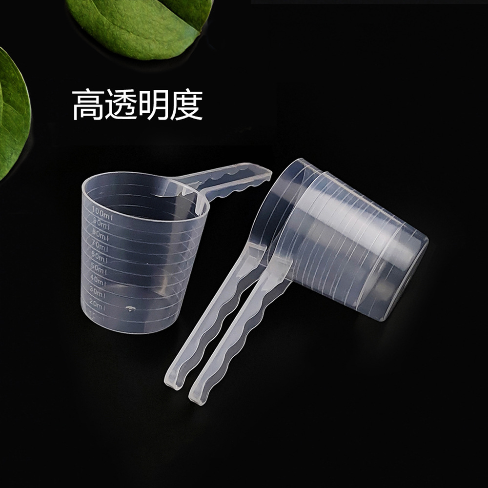 卸売 50 グラム 100 ミリリットル透明プラスチック計量スプーンハンドル計量カップ pp スケールスプーン液体計量定量スプーン