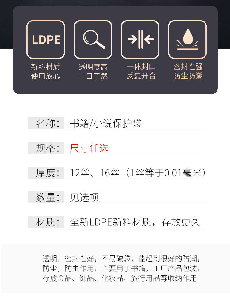 現物透明図書防湿防水防塵自封密実袋図書籍pb保護自粘袋小説コレクション