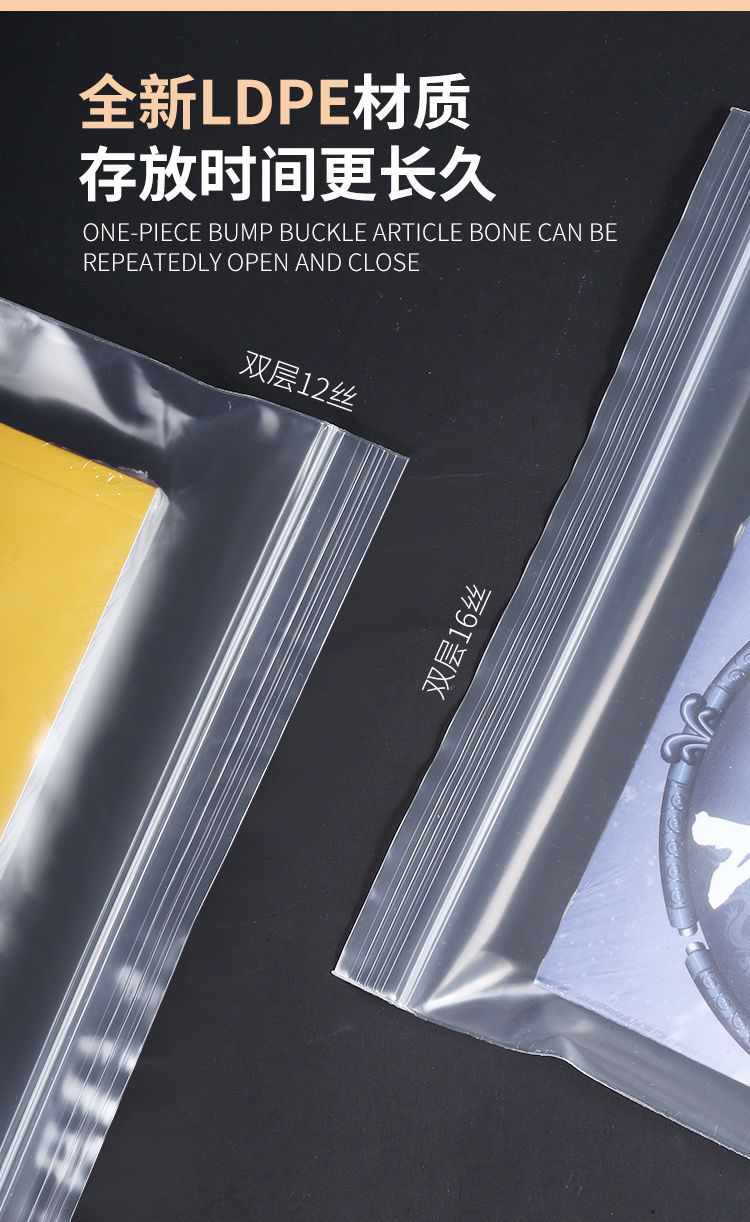 20糸の厚い超透バー保護袋のレーザーチケットの色紙の葉の羅麗谷子のバッジは口を閉じて自分で収納袋を密封します。