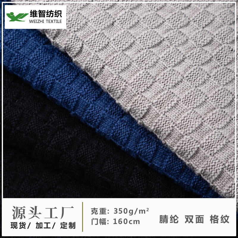 現物高品質服装ニット生地両面正方形格子柔らかいアクリルコート底シャツ粗針布