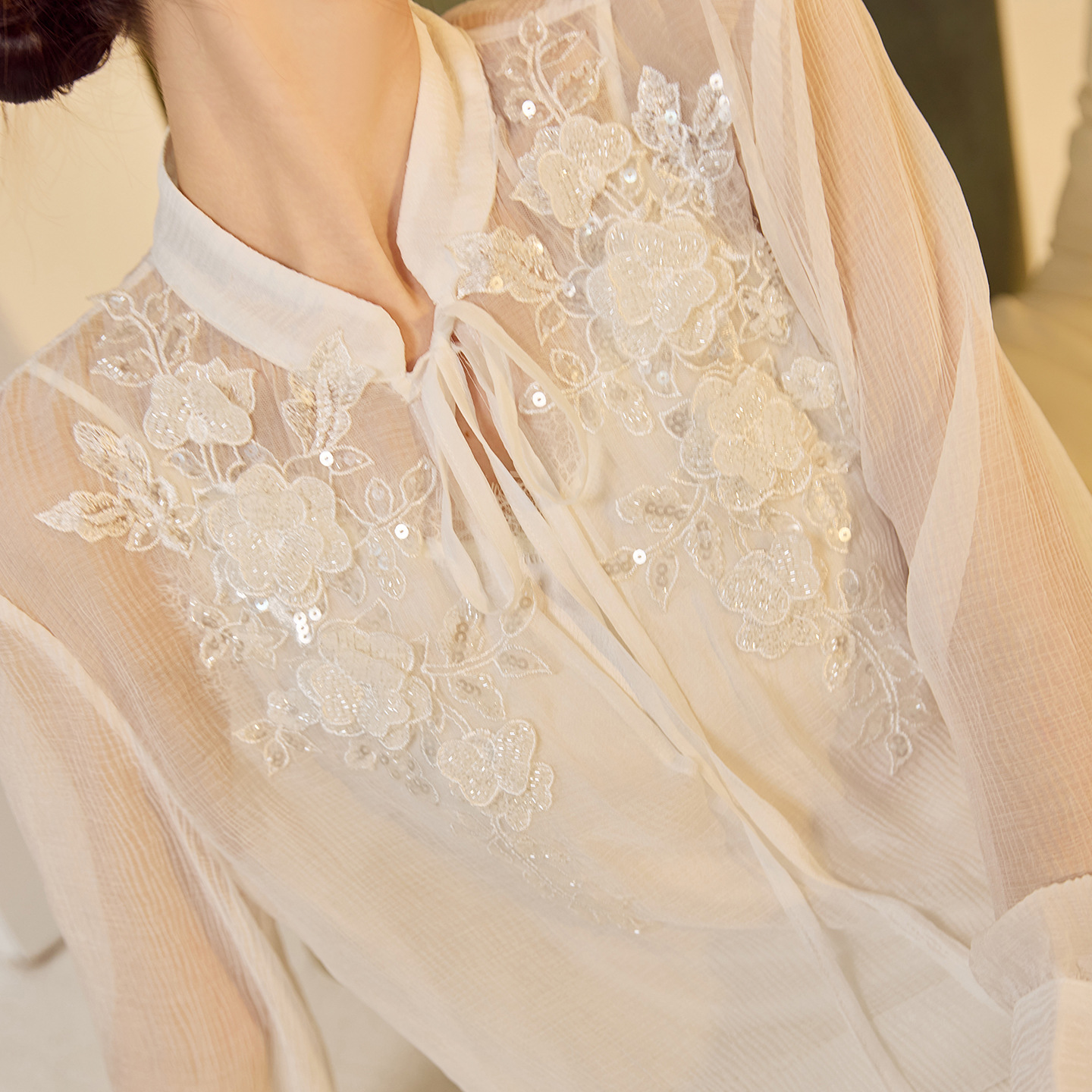 早秋国风百搭宽松款式上衣女新中式重工珠绣系带衬衫 ZX款N7009