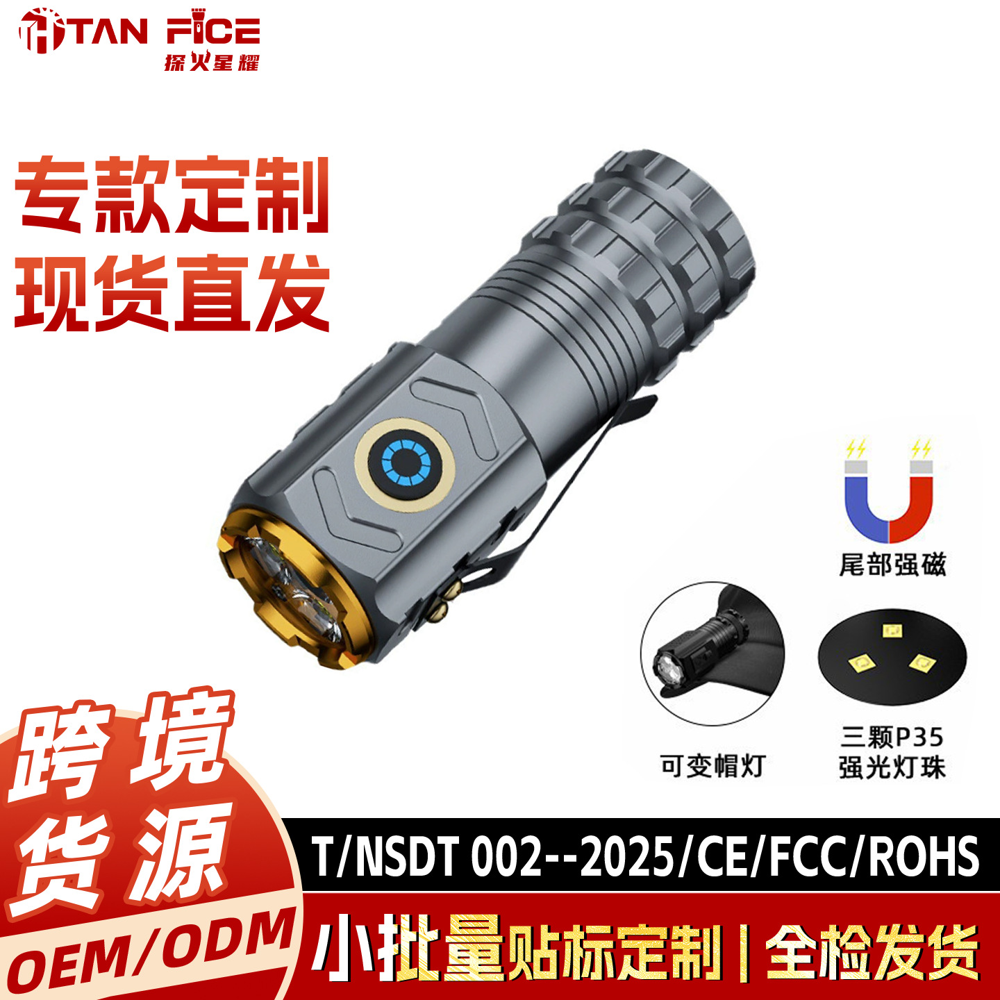 新款银狐三眼怪兽超亮强光手电筒强磁小便携彩色侧灯快充野营灯
