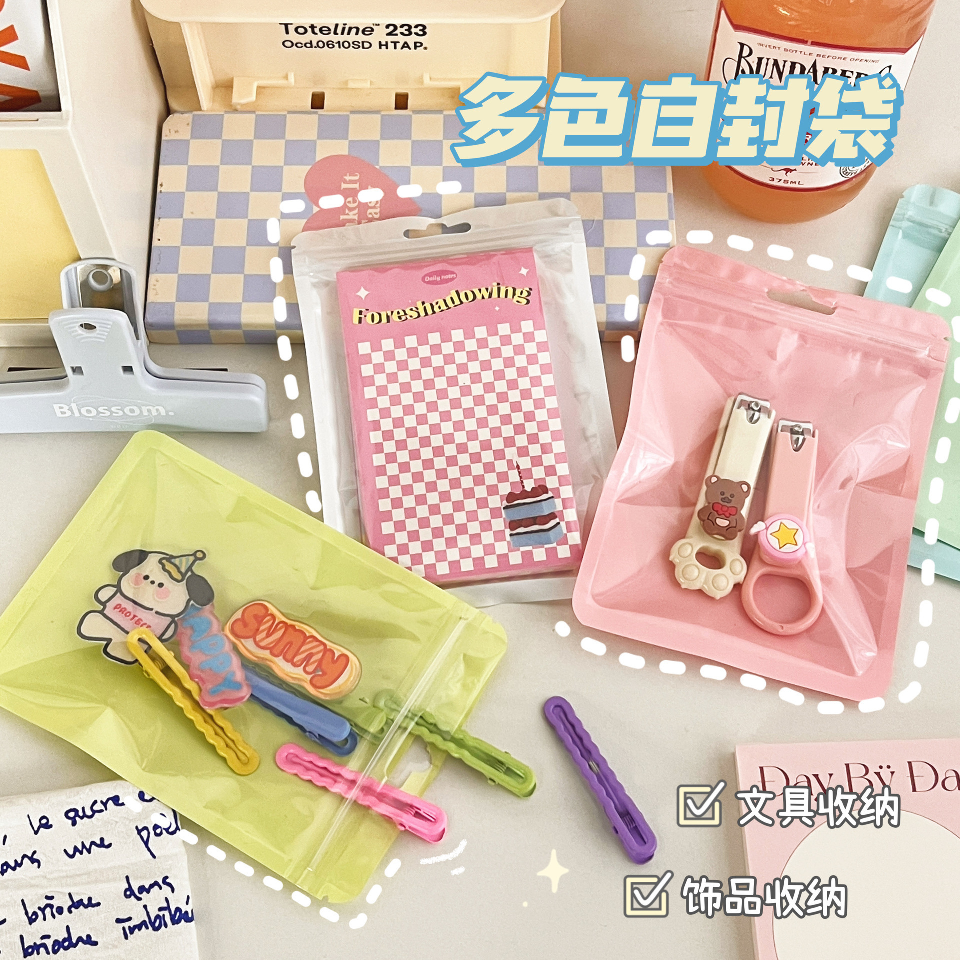 マカロン色透明平口密封包装pp小カードセット