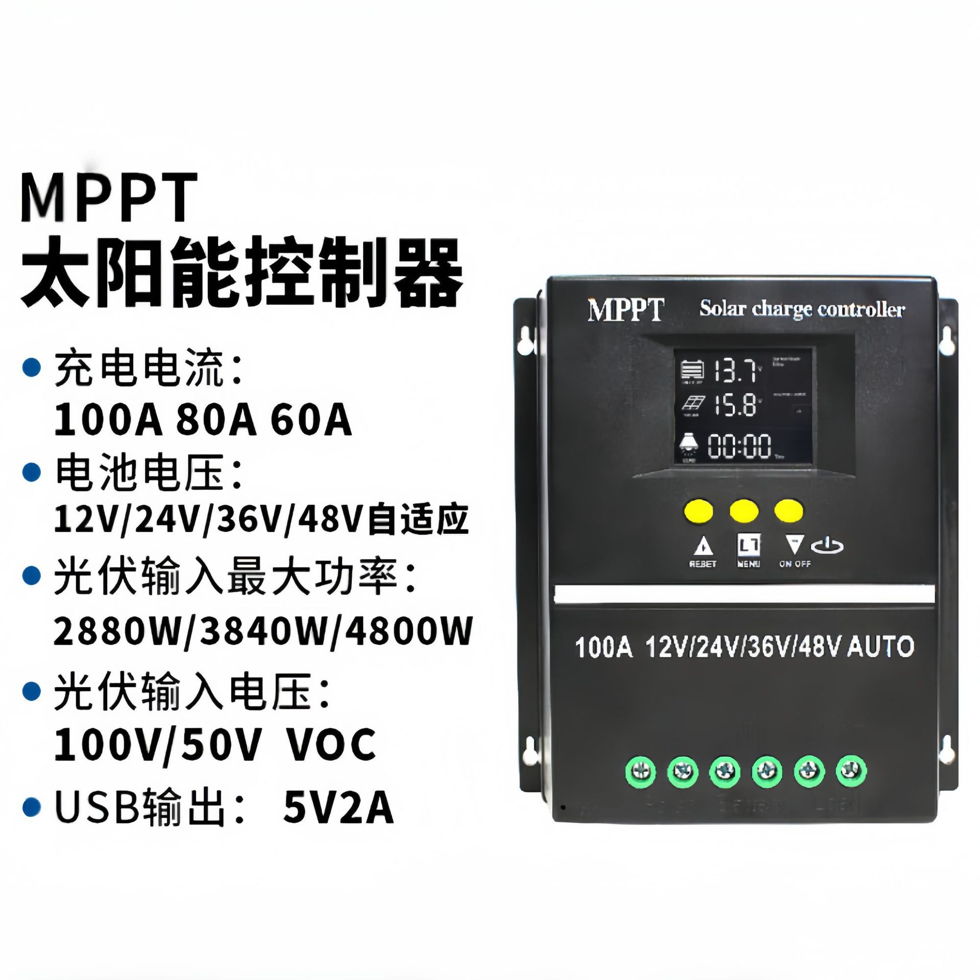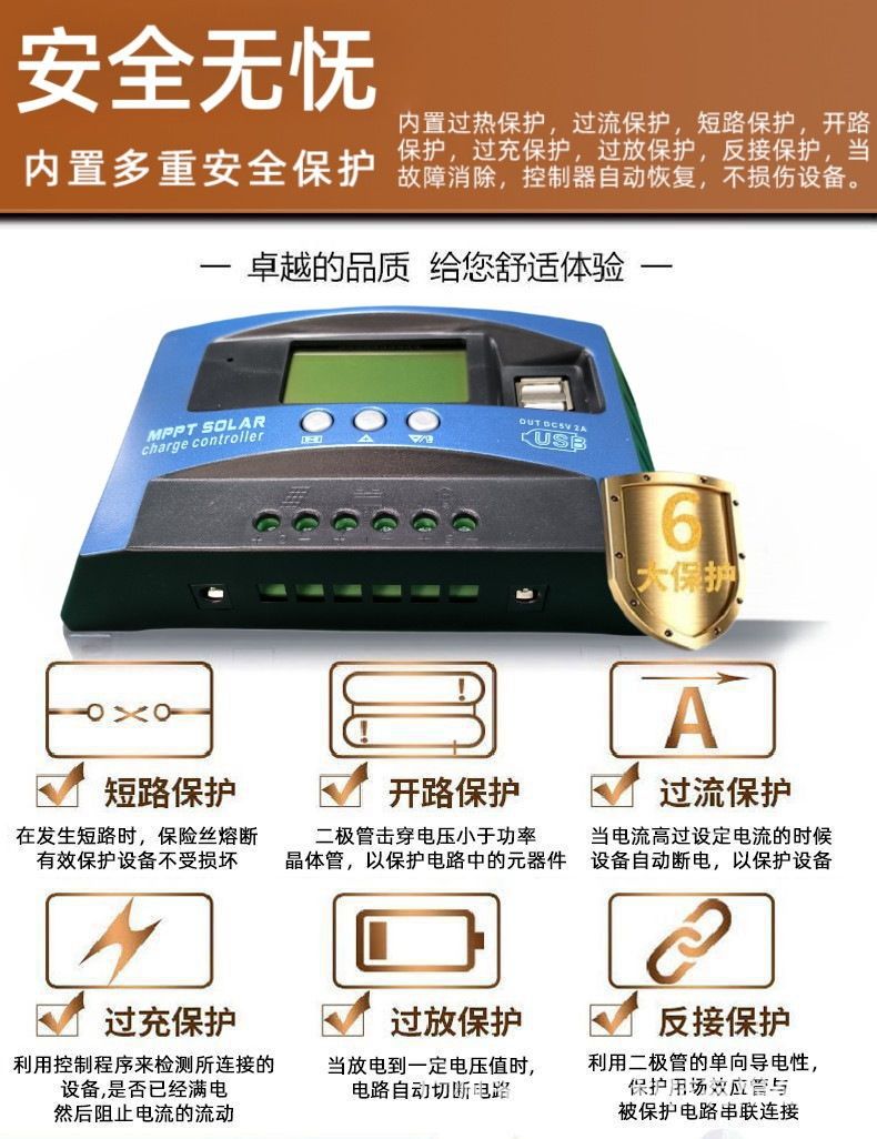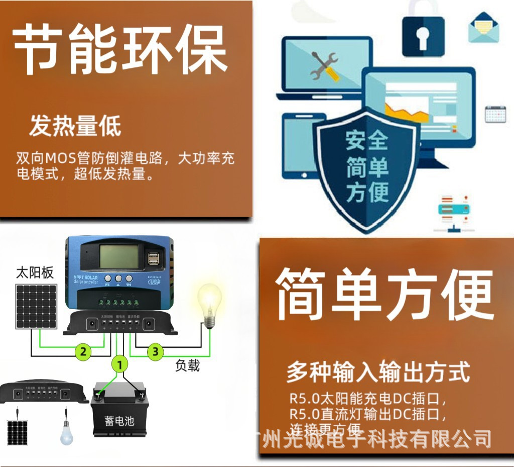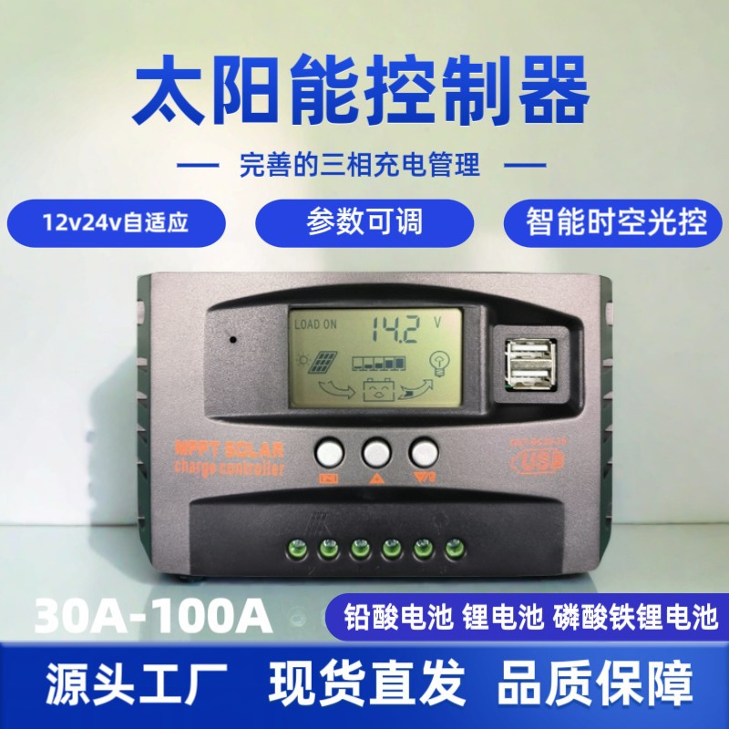 MPPT太阳能充电控制器自适应12V24V光伏板专用智能高效自动聚焦