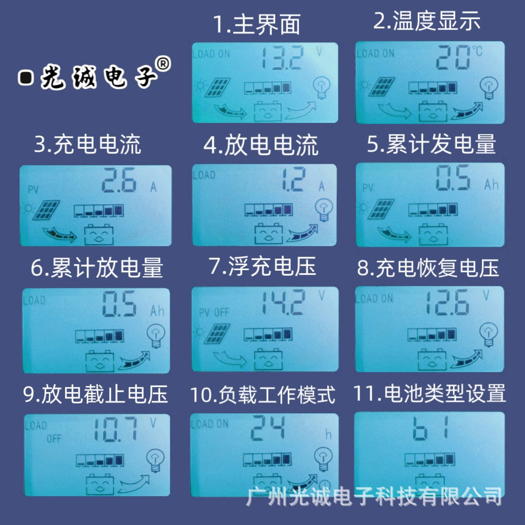 MPPT太阳能发电控制器光伏充电12V/24V自动识别家用智能充电