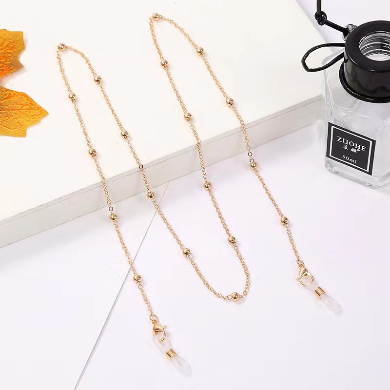 欧米の人気の厚い金の保色の厚い電気めっきのボールのメガネのひものシンプルな金色のメガネの鎖は鎖を掛けます。