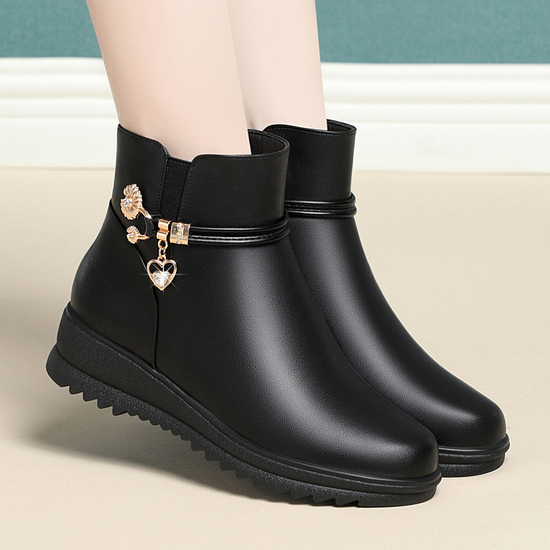 2025新型秋冬ベルベット保温中年ママ靴ファッションブーツ女性綿靴ハイヒールマーティンブーツ