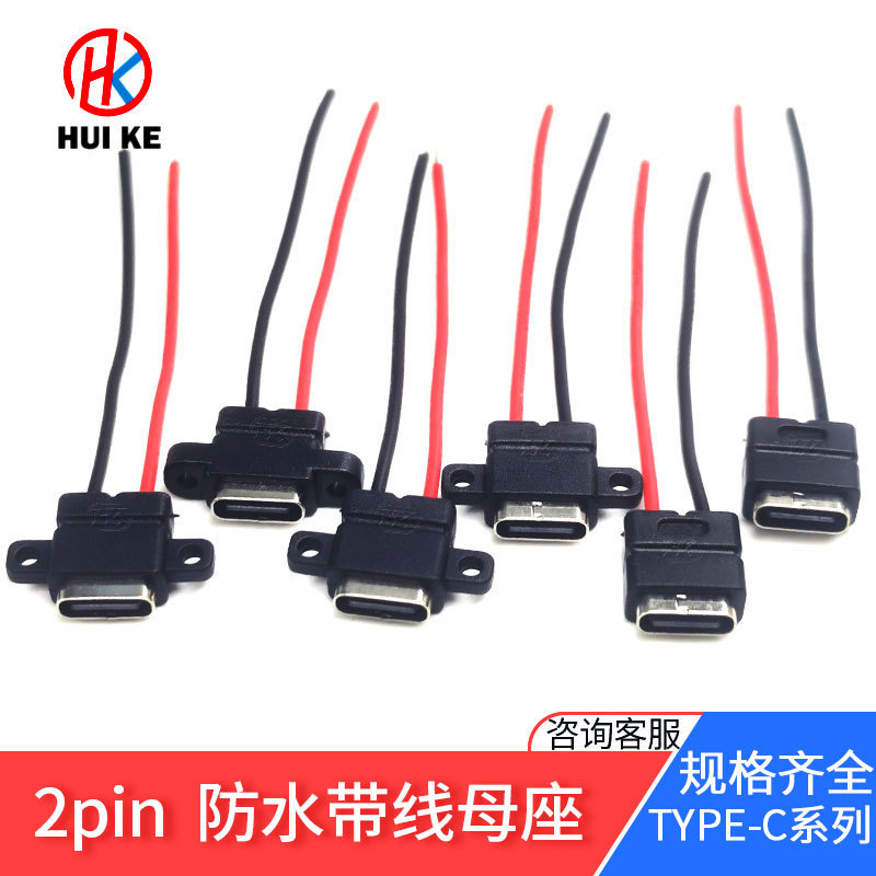 2pin防水母座全塑性溶接線式TYPE-C 2p耳付きusbインターフェイス充電母座線長オプション
