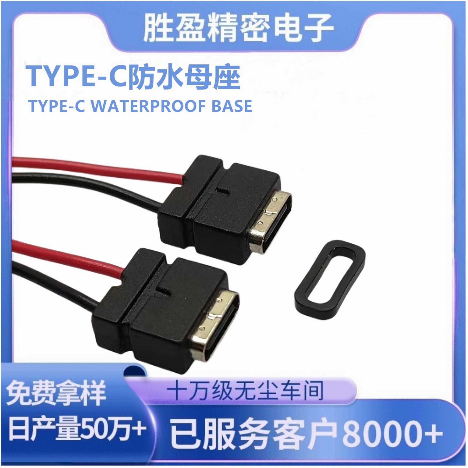 TYPE-C溶接線防水母座2p一体式射出成形電子線type-c防水母座インターフェース