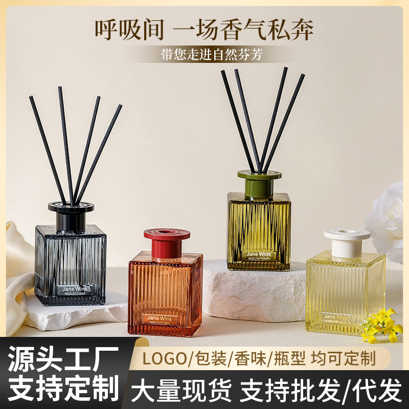 500ML四方香薰瓶经典无火藤条挥发瓶精油扩香玻璃高级感家用持久
