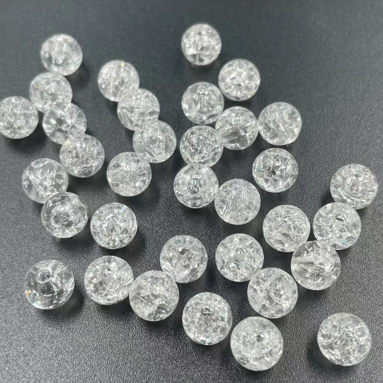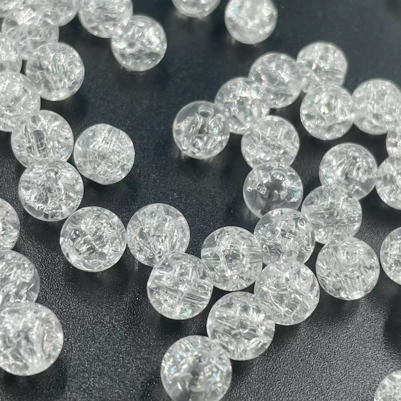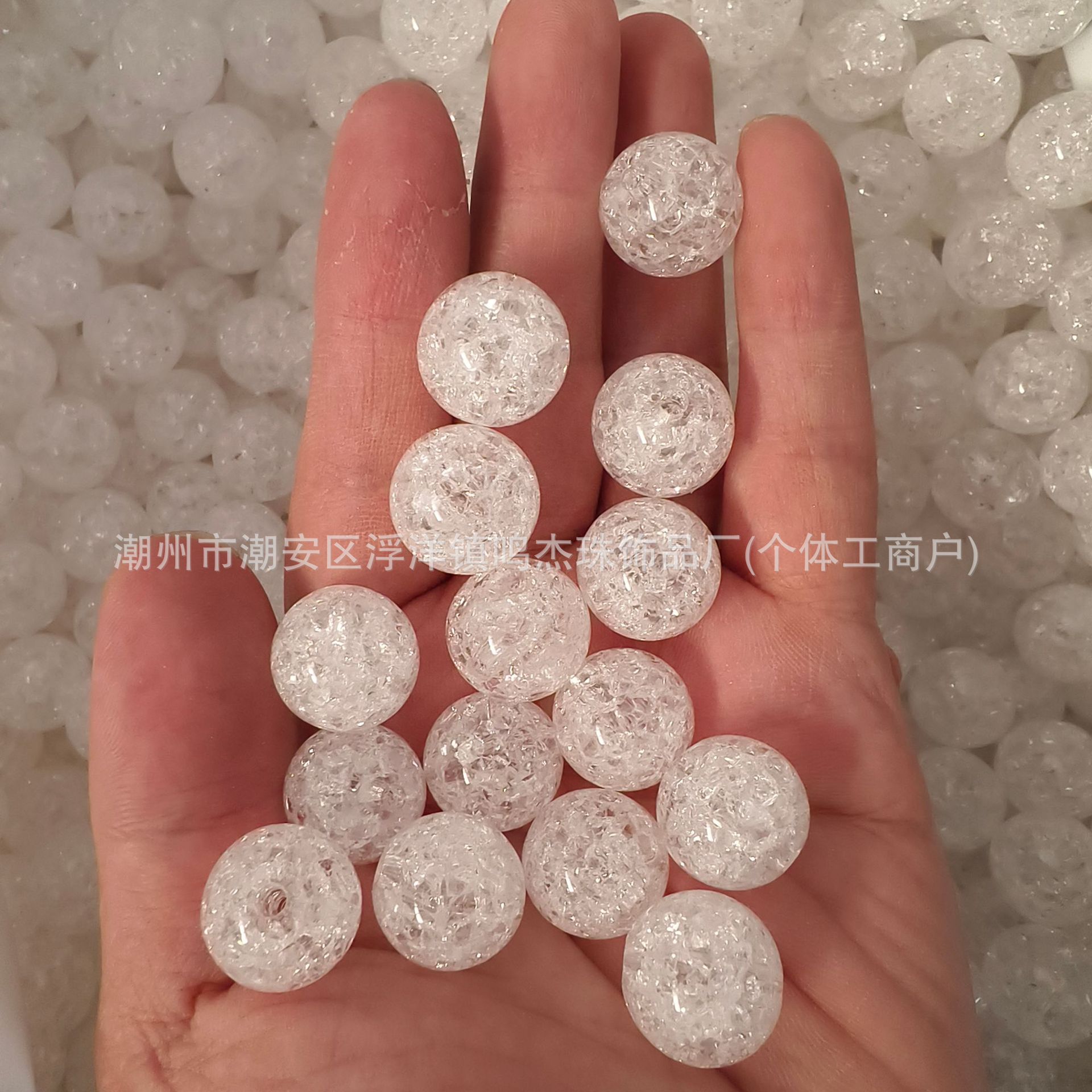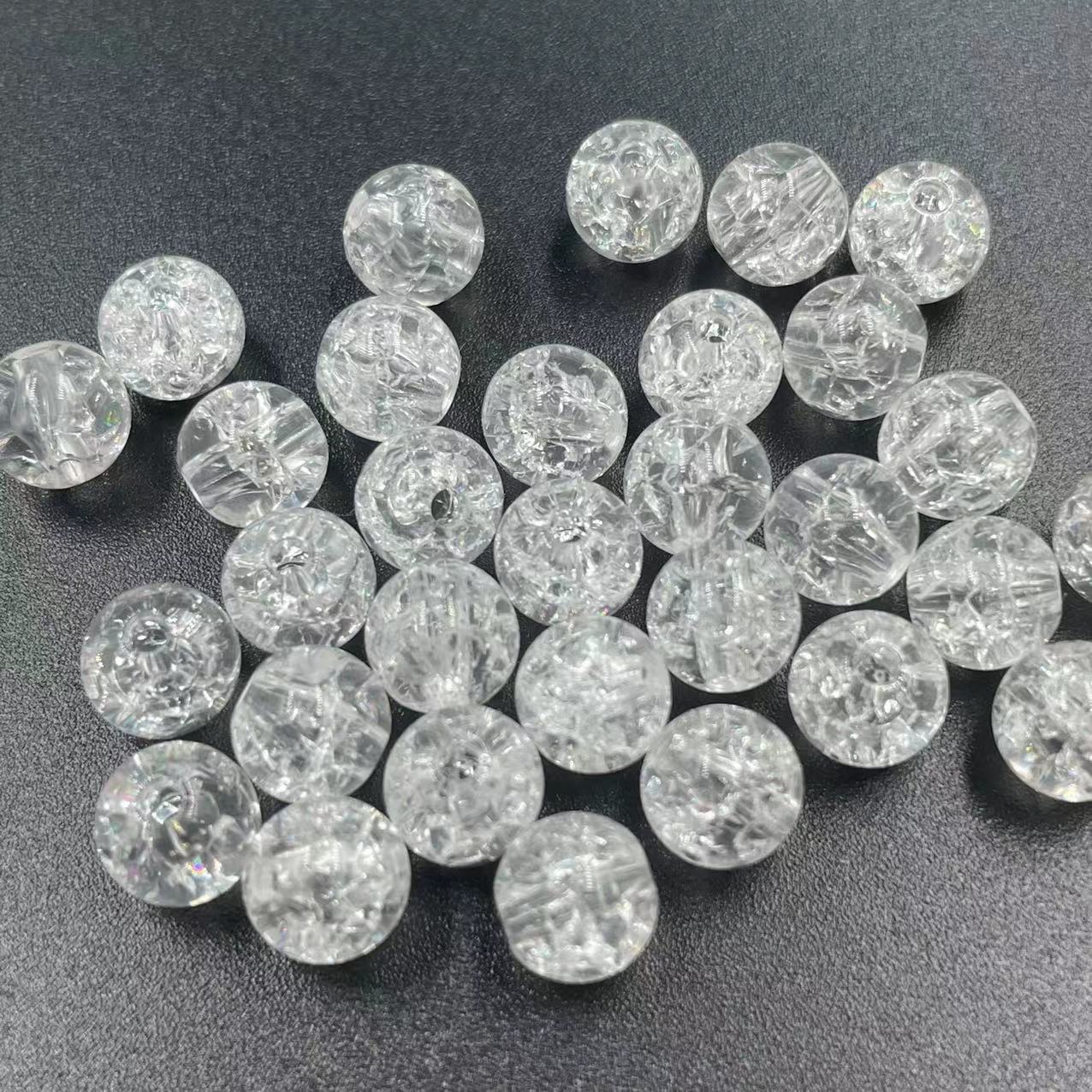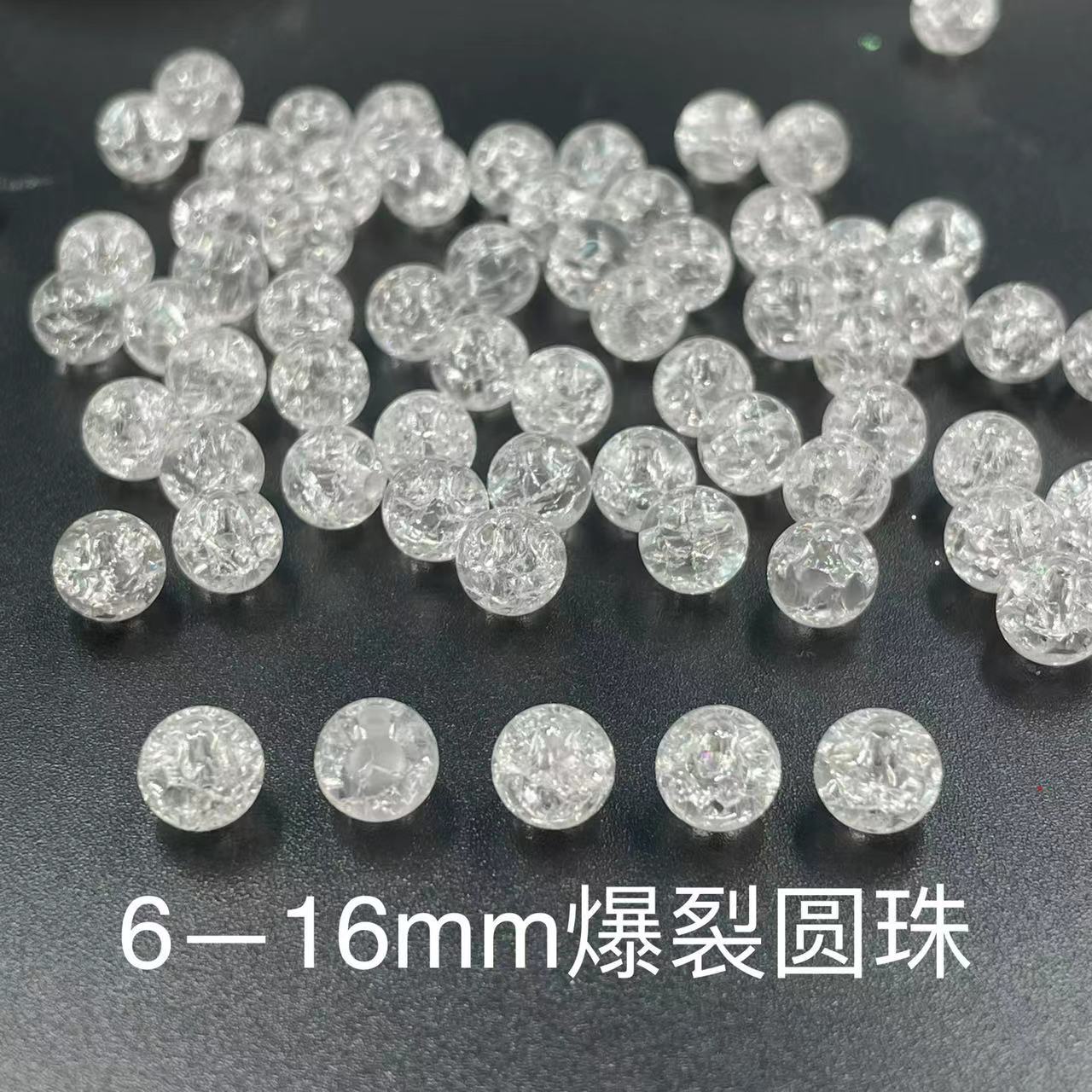 8-16MM裂纹圆珠亚克力散珠爆裂珠子DIY手工串珠碎花珠透彩冰裂珠