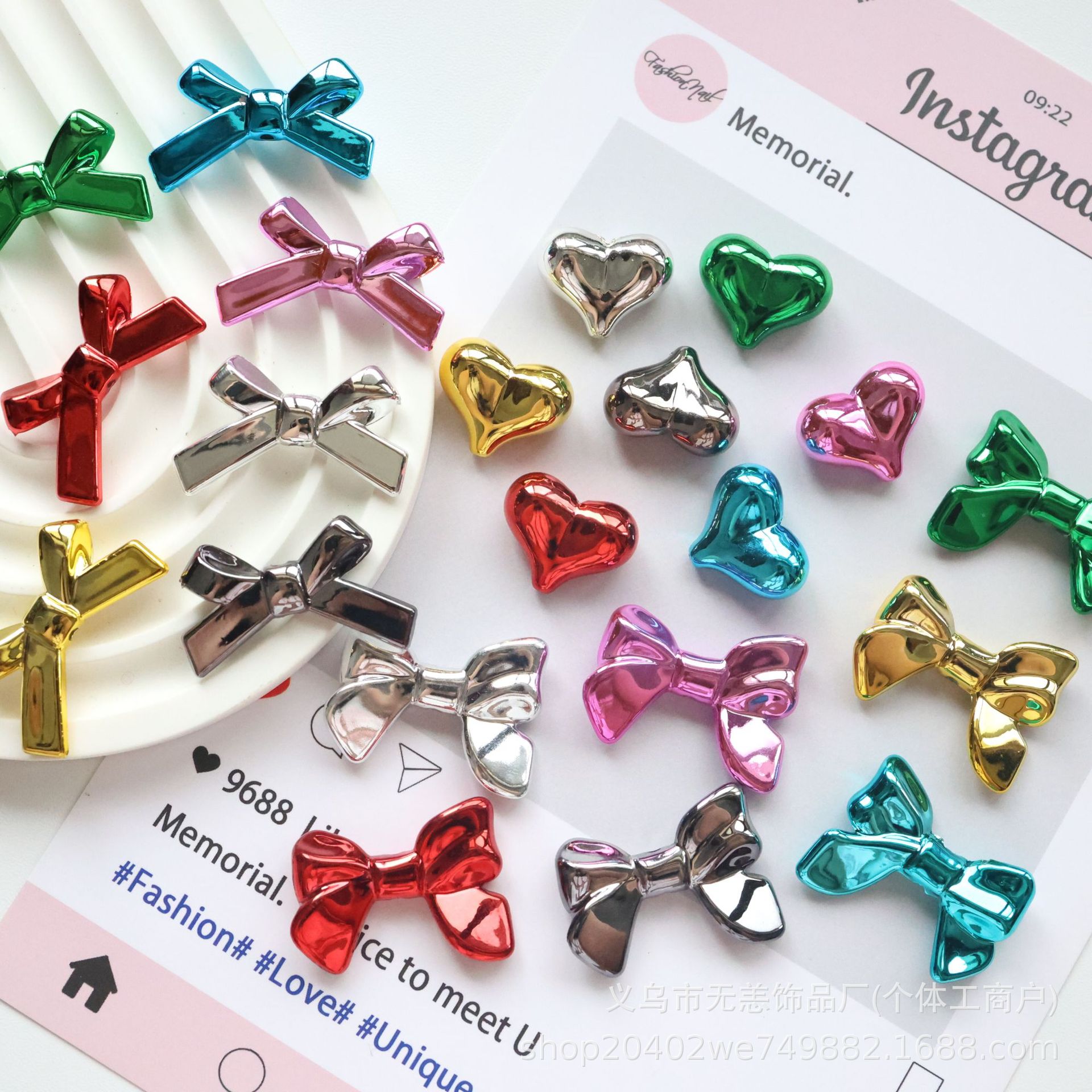 メタル 7 色ピーチラブ/フォークノット/リボンストレートホールビーズ DIY 携帯電話チェーンペンダント素材アクセサリー