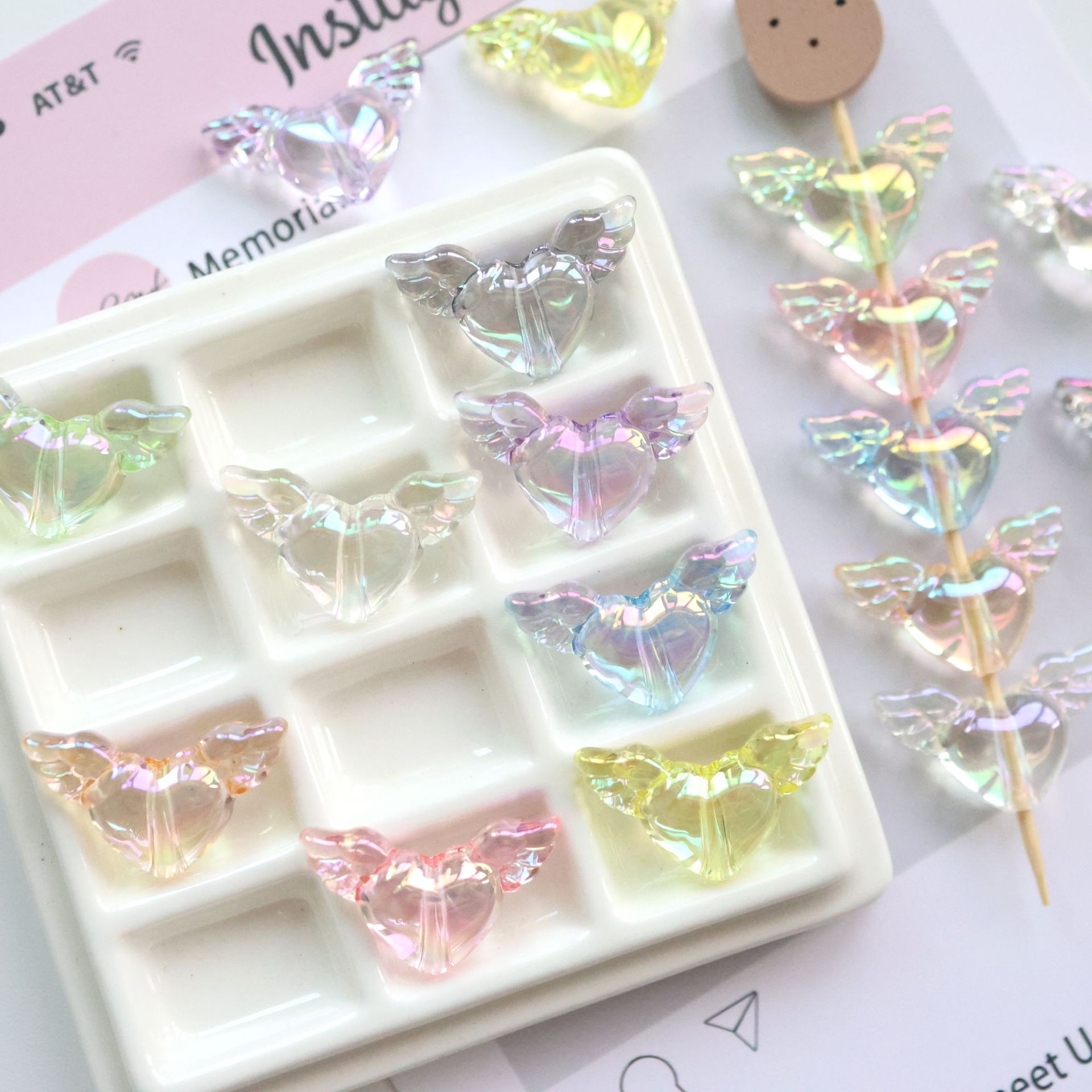 天使の愛の翼UVカラー透明縦穴桃心DIYビーズ携帯電話チェーン掛け材料アクセサリービーズ