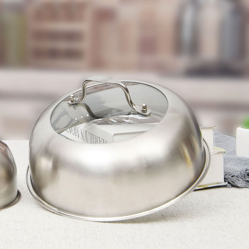 ステンレス鍋蓋炒め鍋蓋通用万能組み合わせ蓋家庭用可視鋼化耐高温防爆蓋卸売り