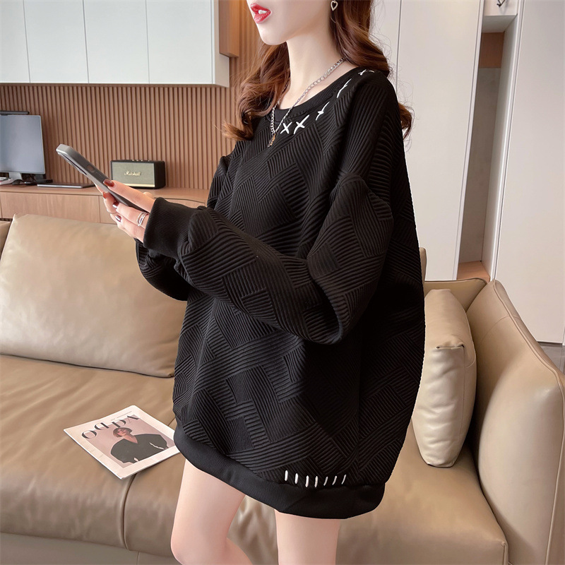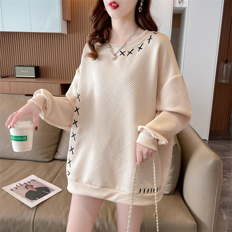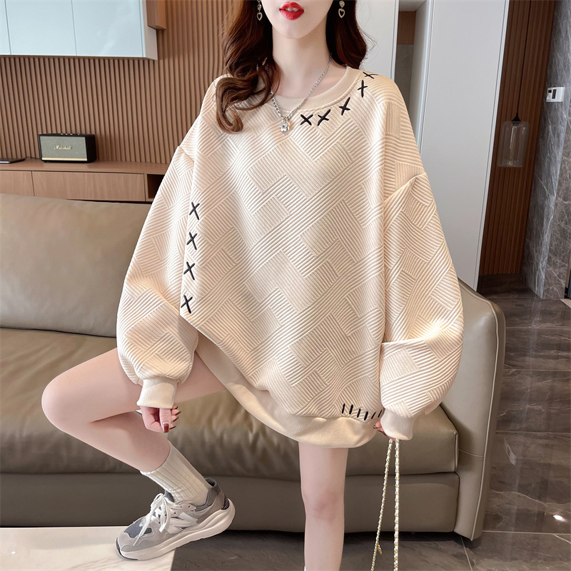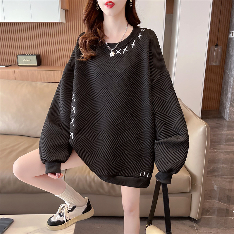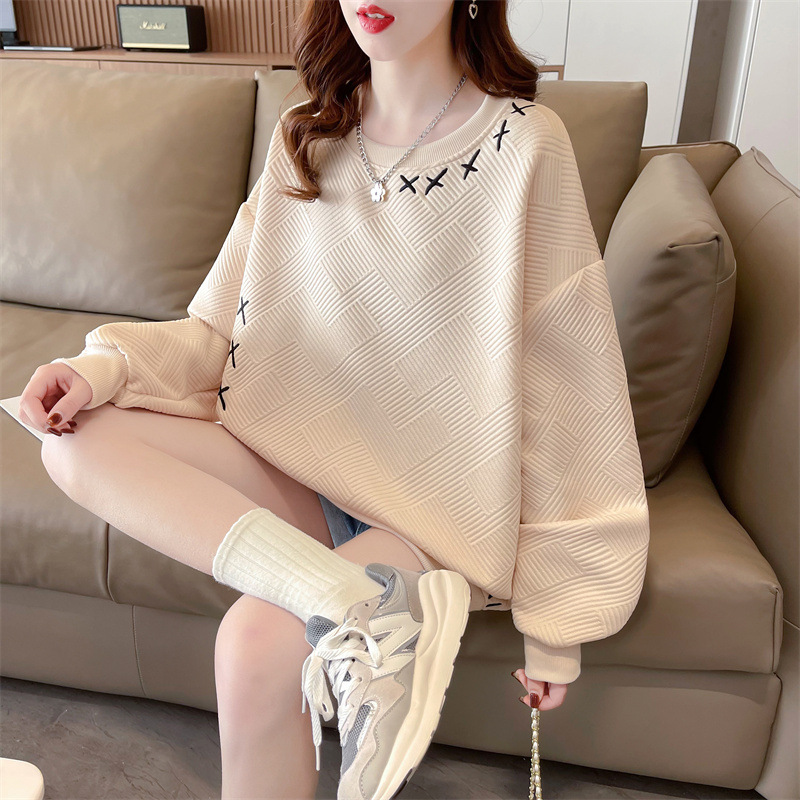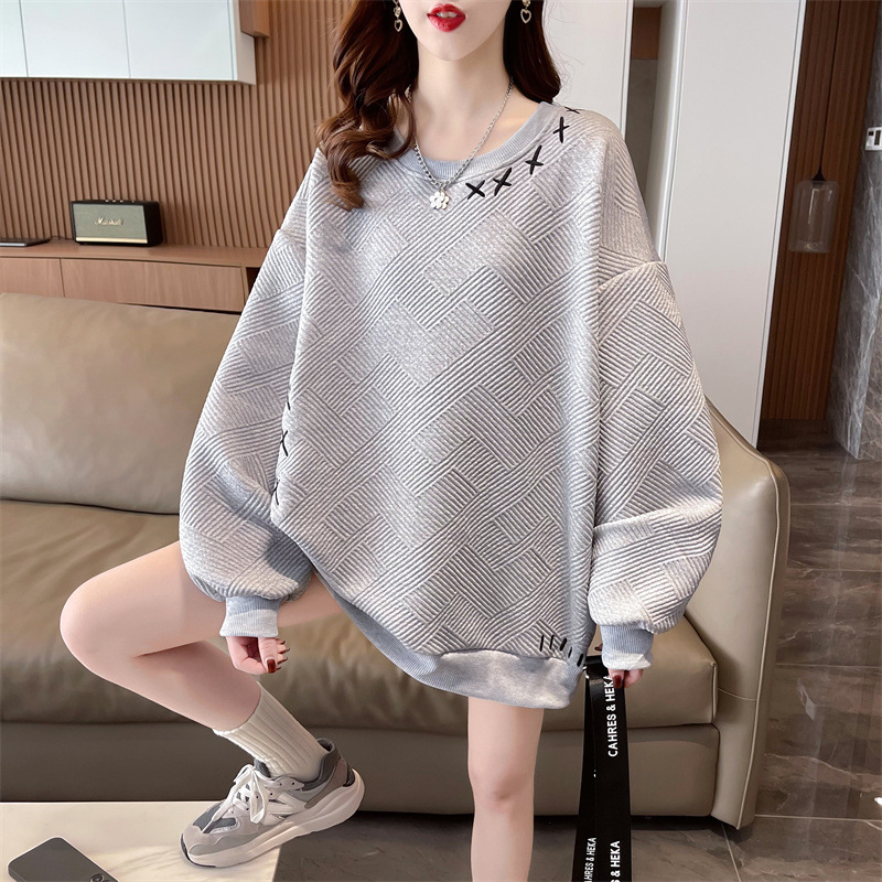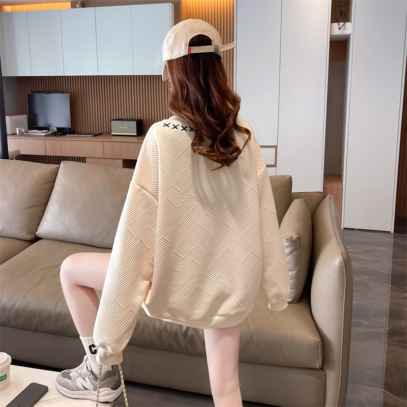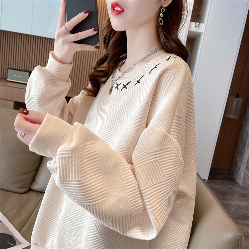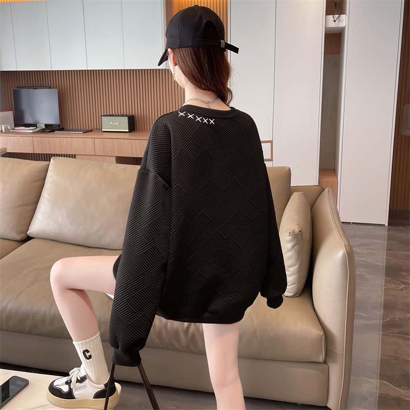 日本のラブスウェットシャツ女性のラウンドネック 2025 秋と冬の新しい厚みのあるパーソナライズされた刺繍長袖ジャカードスウェットシャツ女性