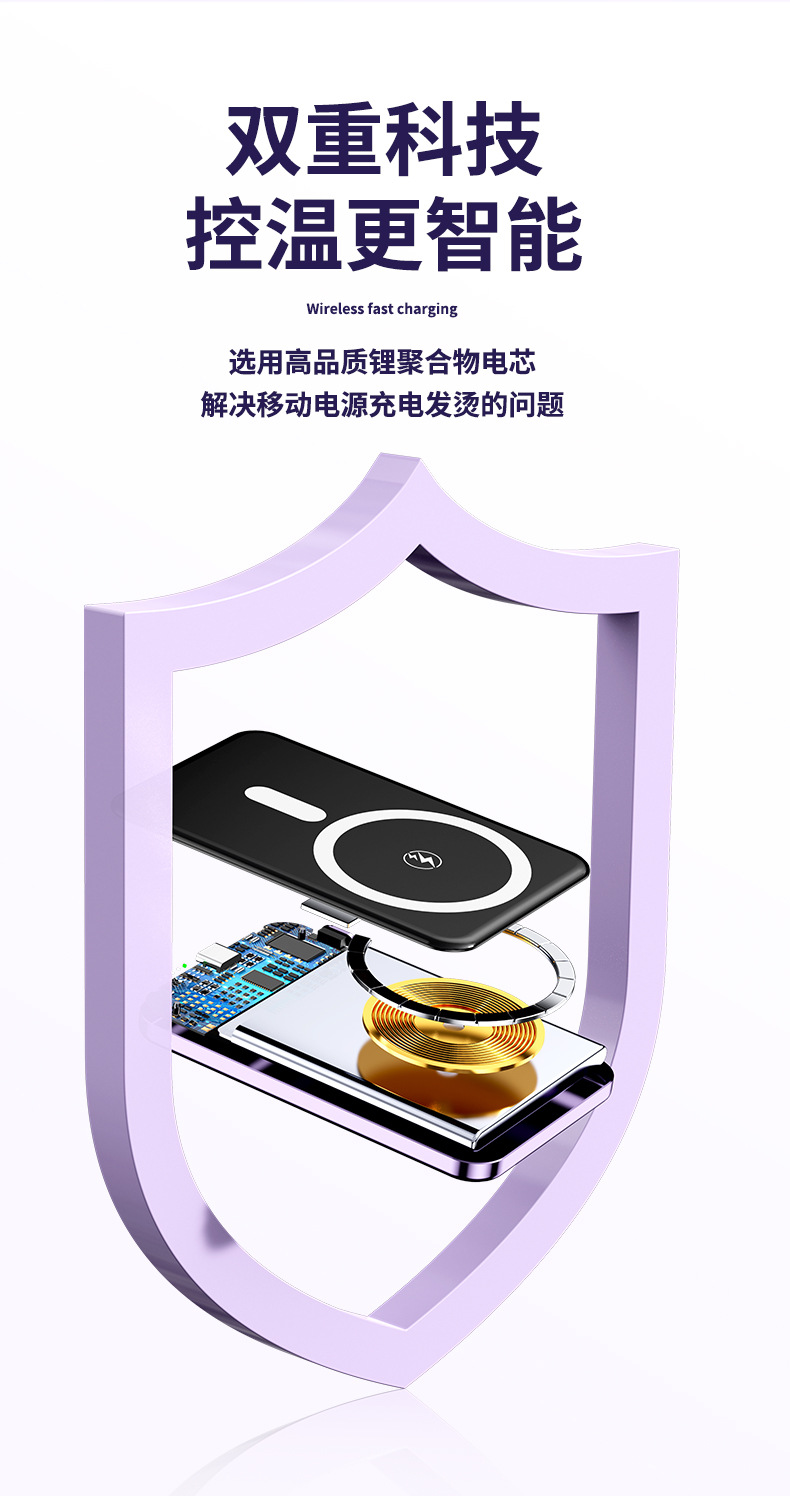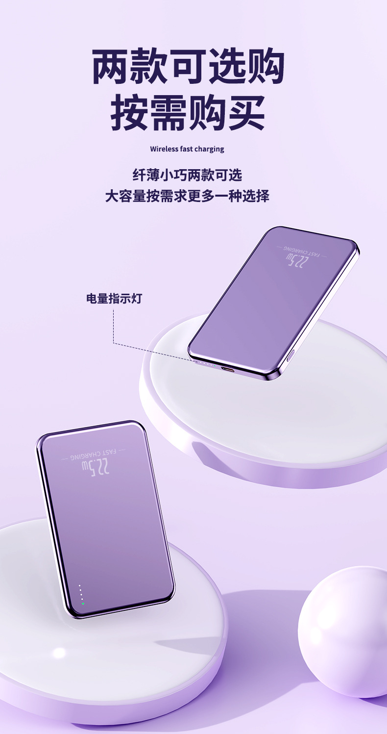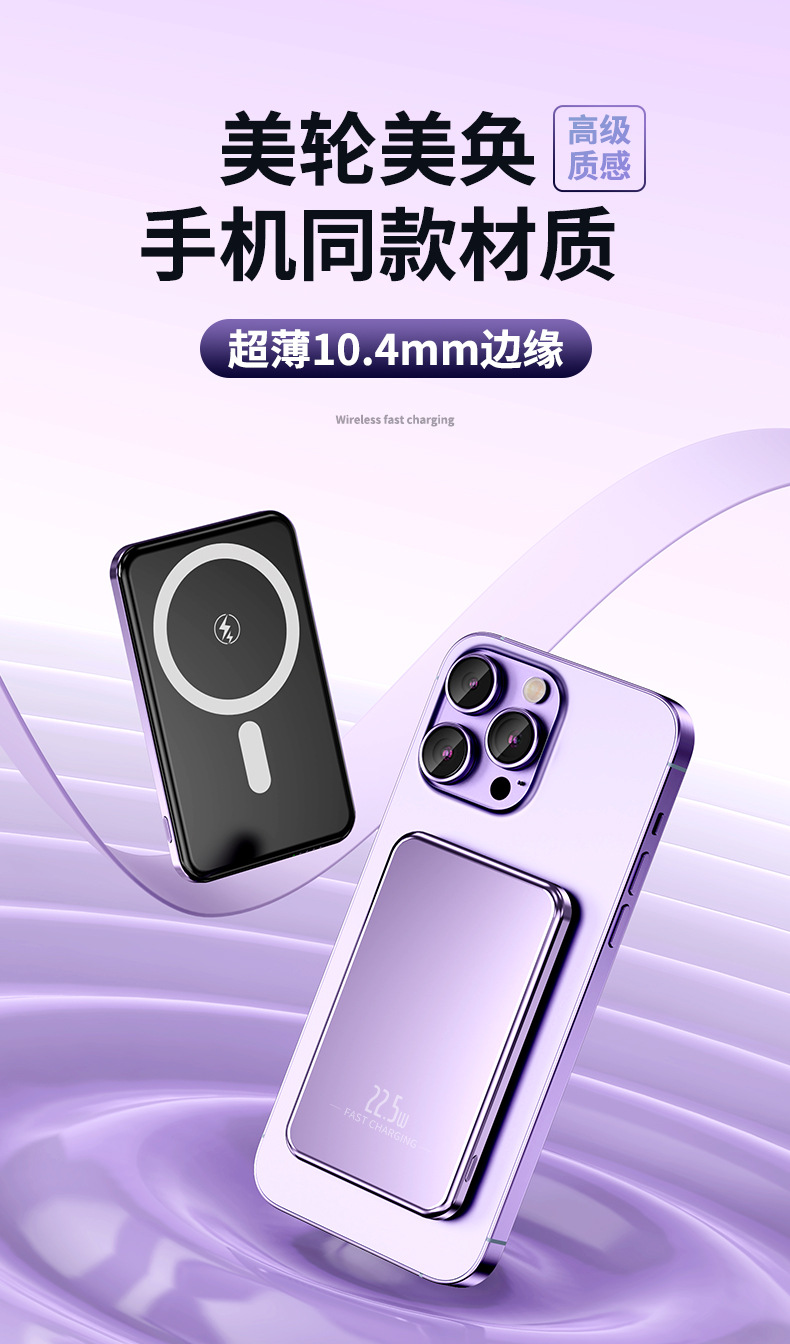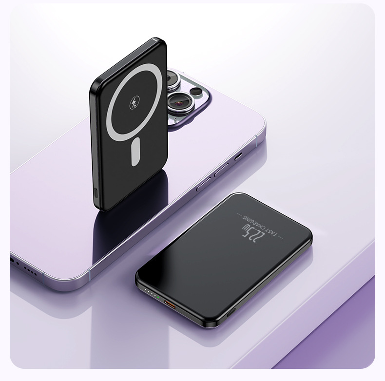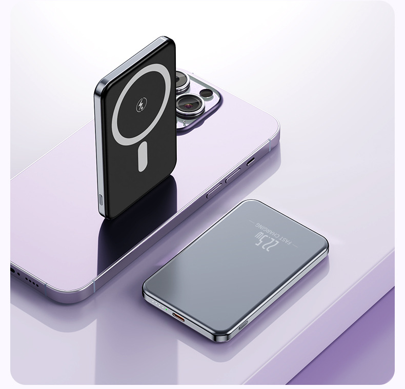 クロスボーダーアルミニウム合金属マグセーフ磁気吸引無線充電5000/1万ミリアンペア充電宝超薄型モバイル電源