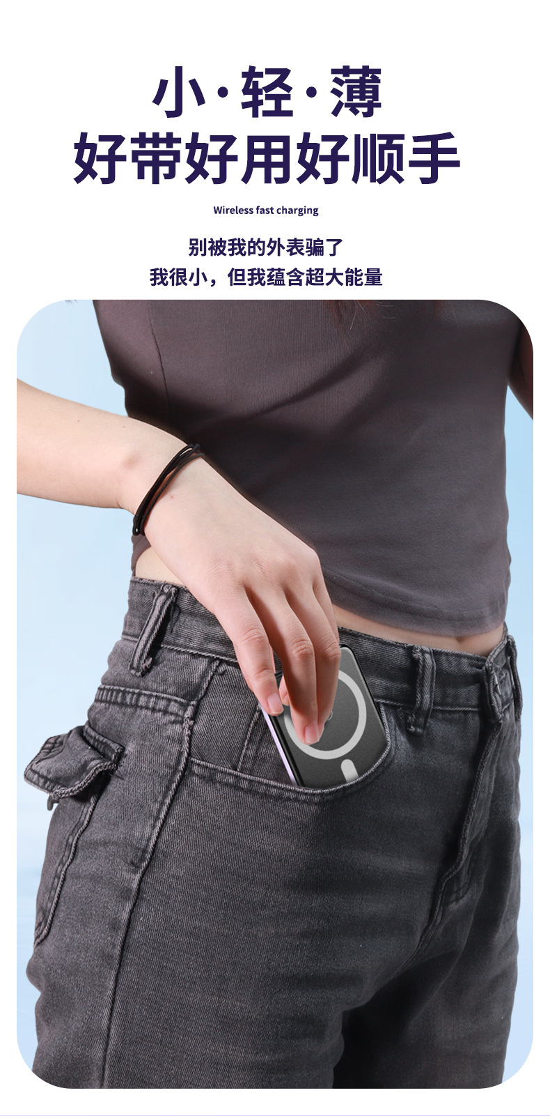 超薄型アルミ合金マグセーフ磁気吸引ワイヤレス充電宝ミニ10000ミリアンペア小型ギフトモバイル電源