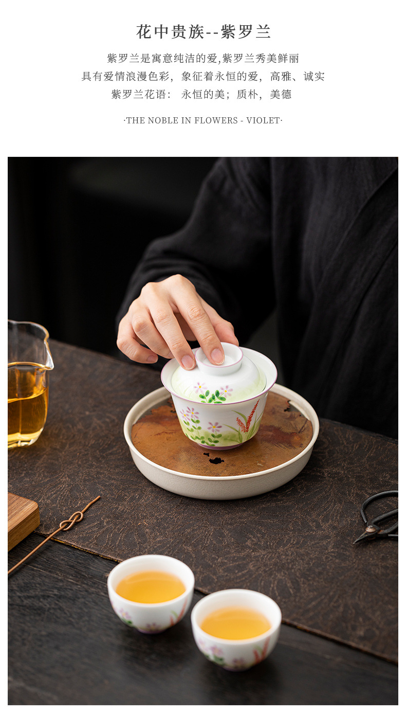手描きのバイオレットの蓋の碗のお茶の杯の陶磁器の工夫の茶器の単一の高級なお茶の碗の家庭は手を温めません。