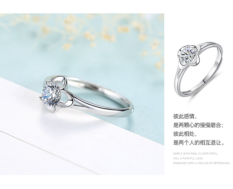 シンプルな四つ葉の銀の指輪の女性の個性の日韓版の学生の潮人の女性の指の環は口のネットの赤い指輪を開けて卸売りします。