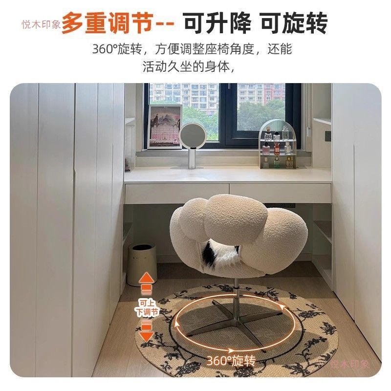 厂家直销奶油风化妆凳卧室可旋转化妆椅子羊羔绒高级感出片梳妆凳