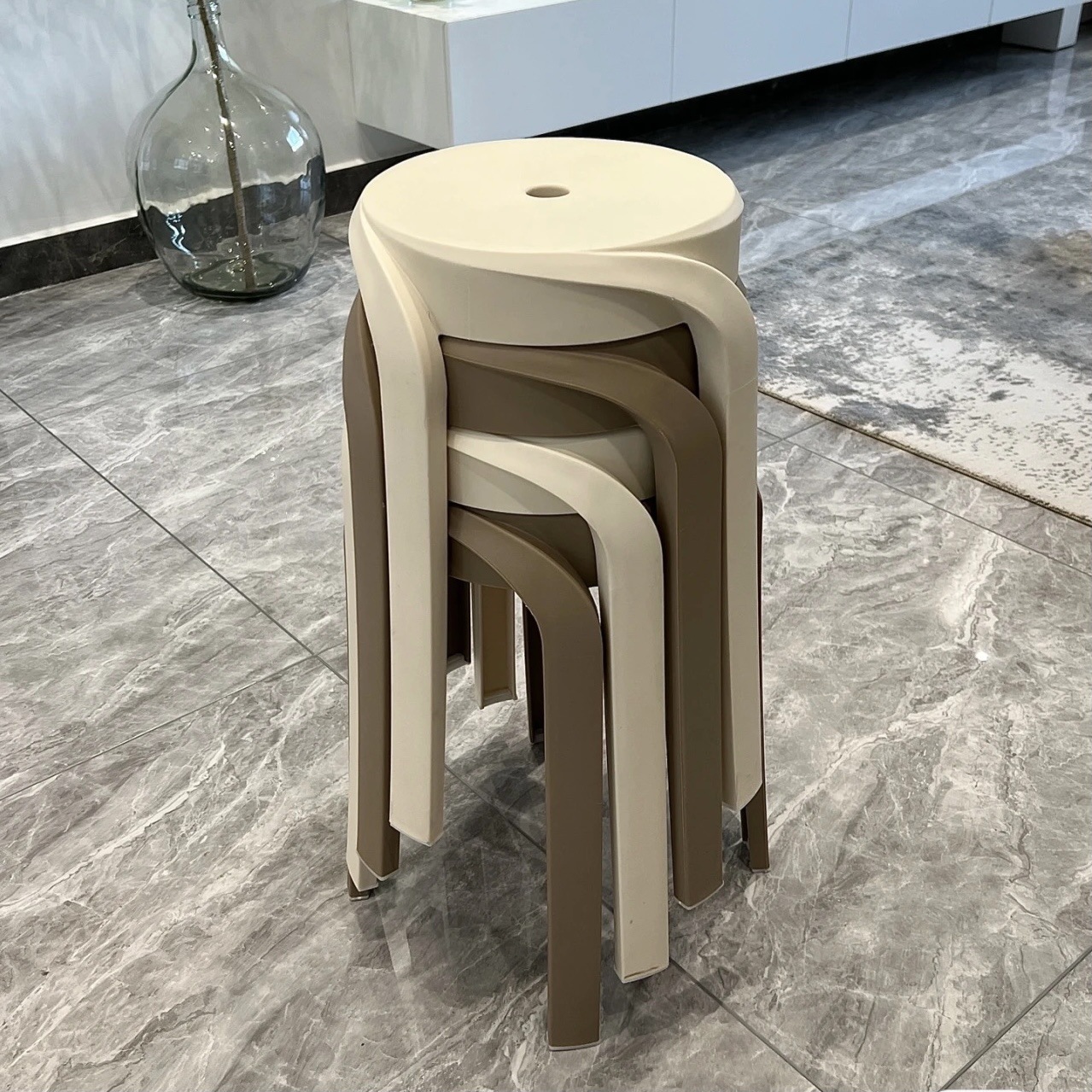 プラスチックスツールモダンなシンプルな積み重ね可能な極厚インターネットセレブスツール家庭用肥厚積み重ね可能なラウンドベンチ風車椅子