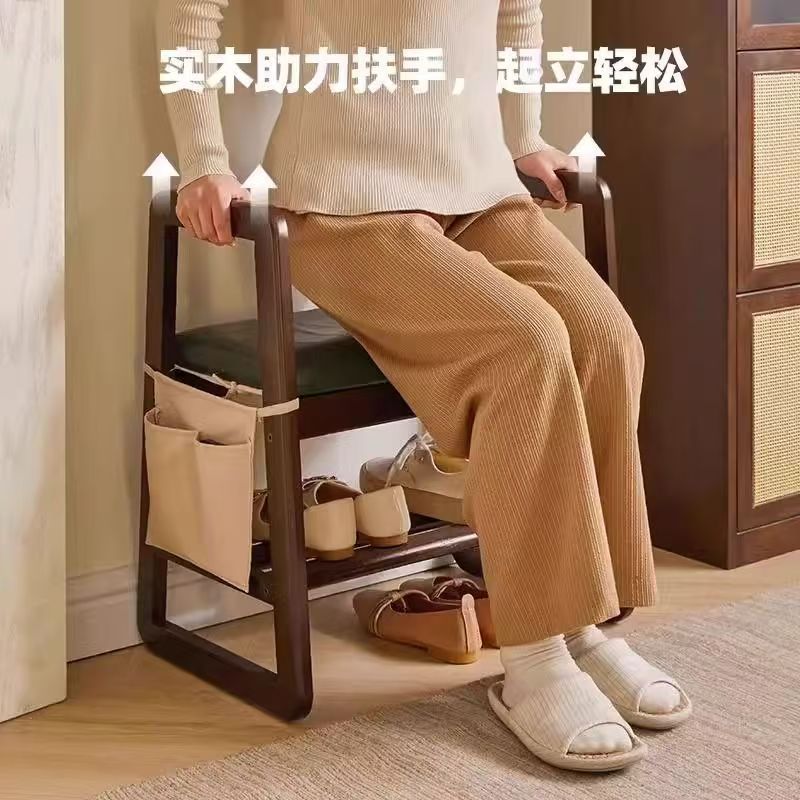 玄関に肘掛け付きの家庭用無垢材靴交換スツール、玄関に座ることができるスツール、玄関スツール、高齢者用靴交換スツール