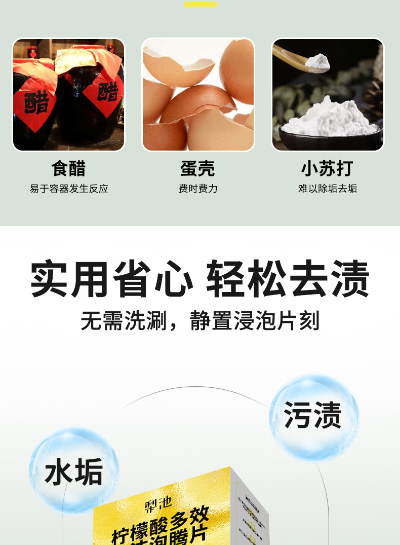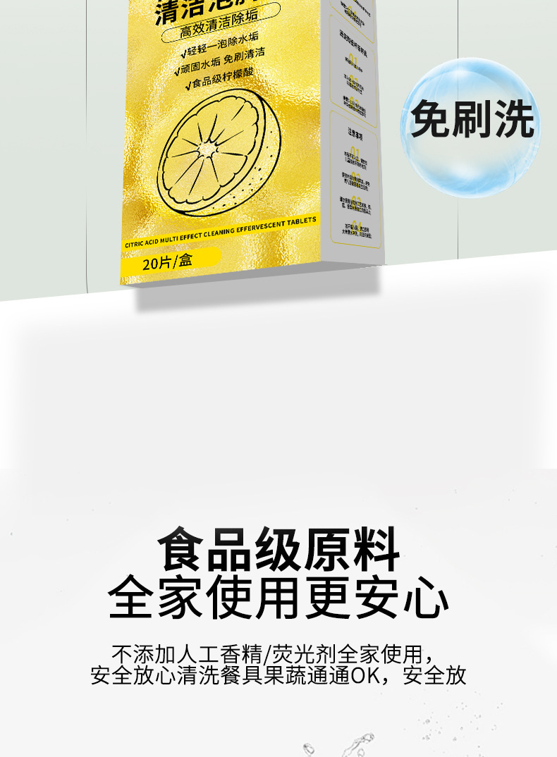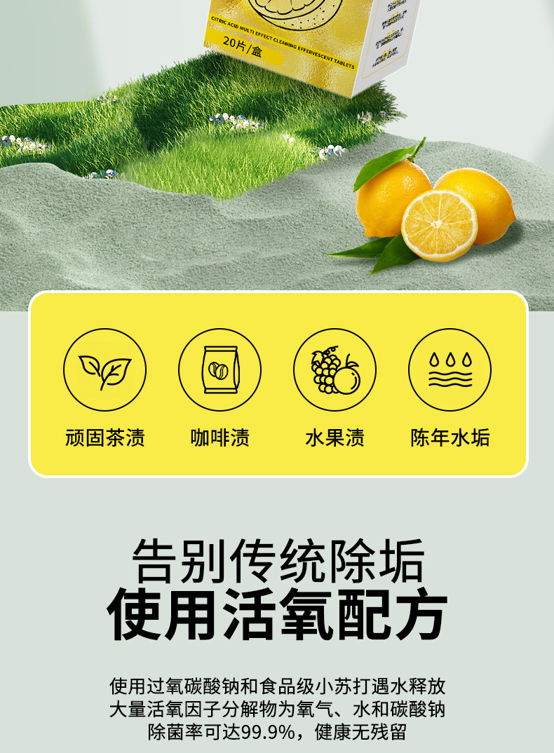 柠檬酸除诟剂泡腾片去水垢清洁片剂洗茶杯咖啡机柠檬酸除垢剂神器