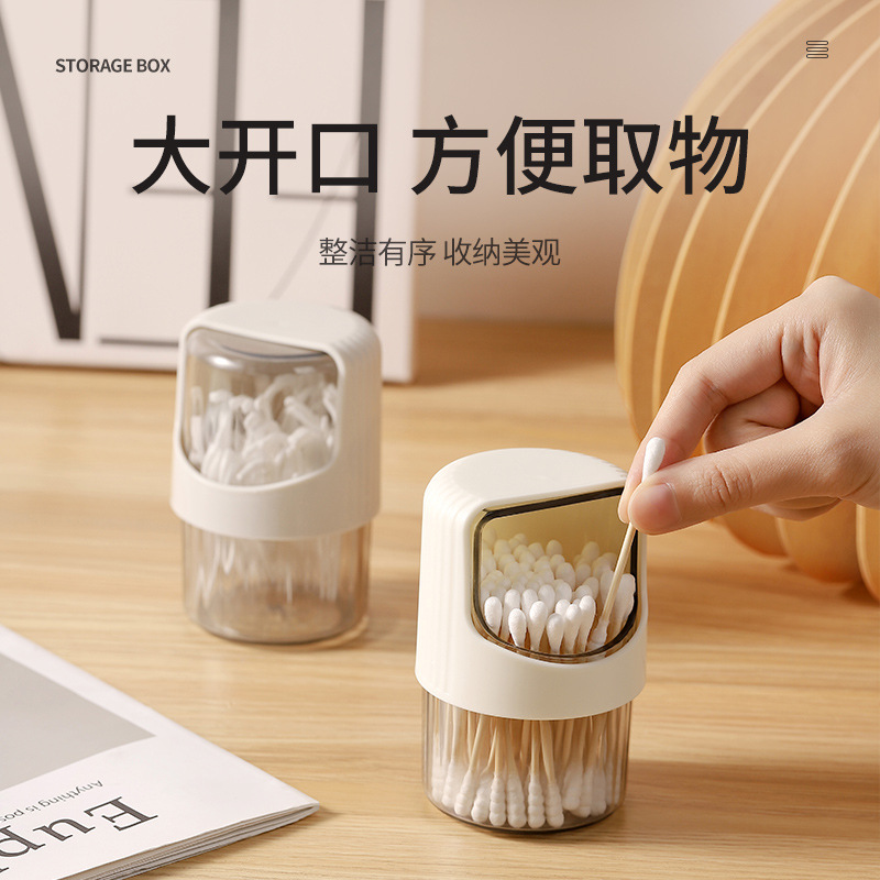 新しい透明綿棒収納ボックス回転防塵デスクトップ綿棒収納ボックス蓋付きプラスチックつまようじ収納瓶
