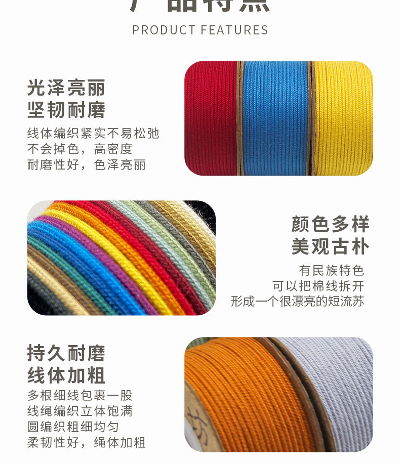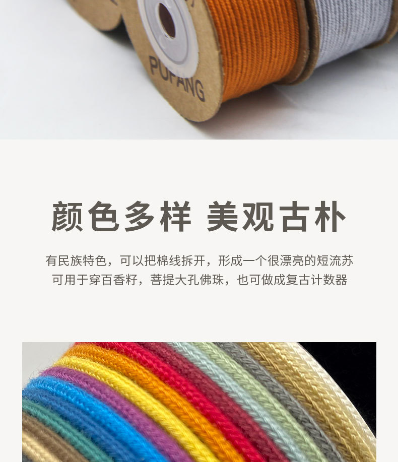 文游包芯綿糸可伸糸綿糸手織り綿糸チベット式ロープ三通文遊びアクセサリービーズ