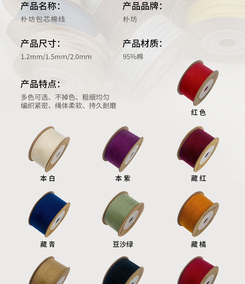 文游糸縄現物メーカー文游純綿カラー包芯綿ロープ吊り下げロープ手織り多彩な糸ビーズ