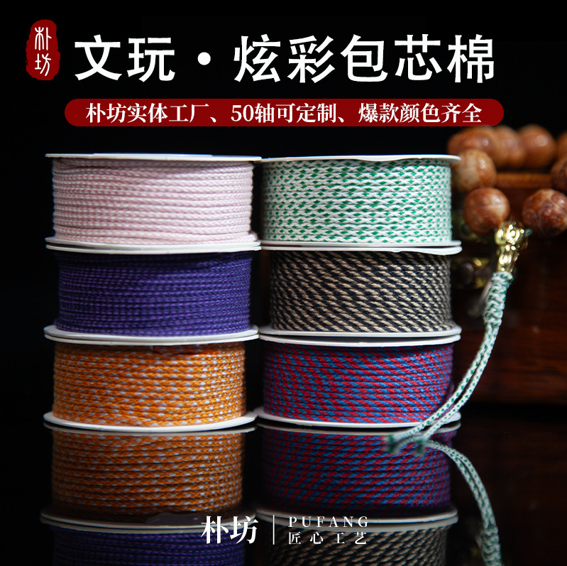 文游糸縄包芯綿縄卸売り耐磨耗仏珠線星月菩提百香種金剛手串ビーズロープ