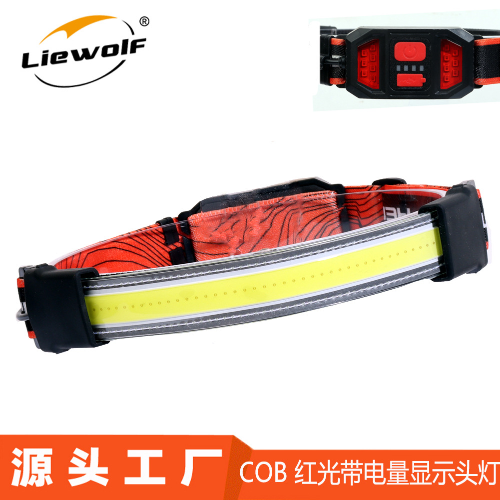 クロスボーダーcob全光ヘッドライトusb赤色電力量表示屋外ledキャンプ登山夜走るヘッドライト