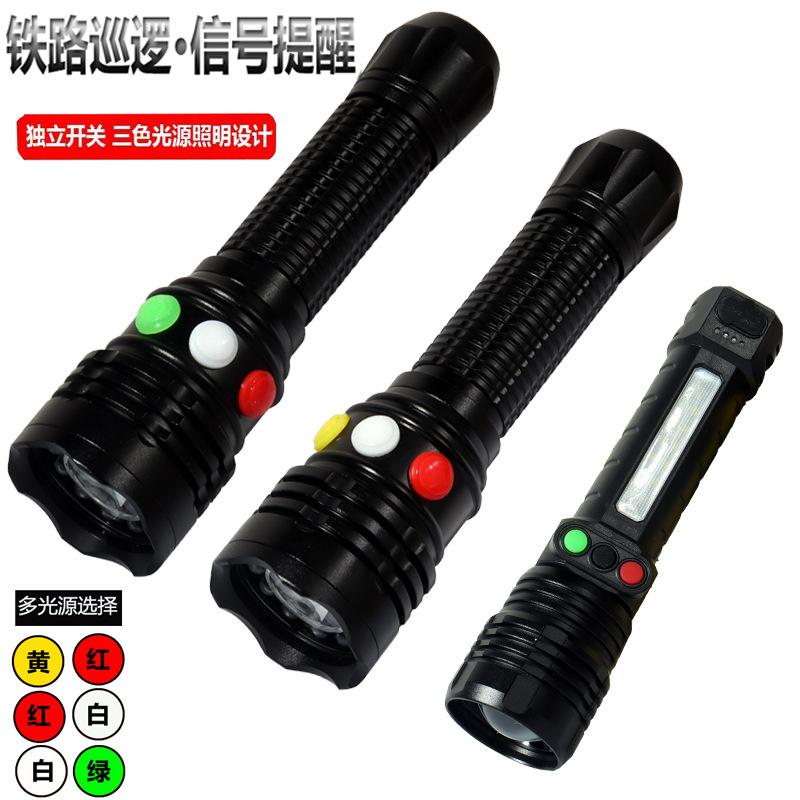 強光信号灯救命懐中電灯紅白緑/黄三色充電電池鉄道信号灯クロスボーダー卸売り