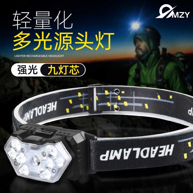 国境を越えた新型屋外ヘッドライトキャンプ夜釣りヘッドライト卸売りヘッドライトは軽くて非常に強い航続灯を調節できる