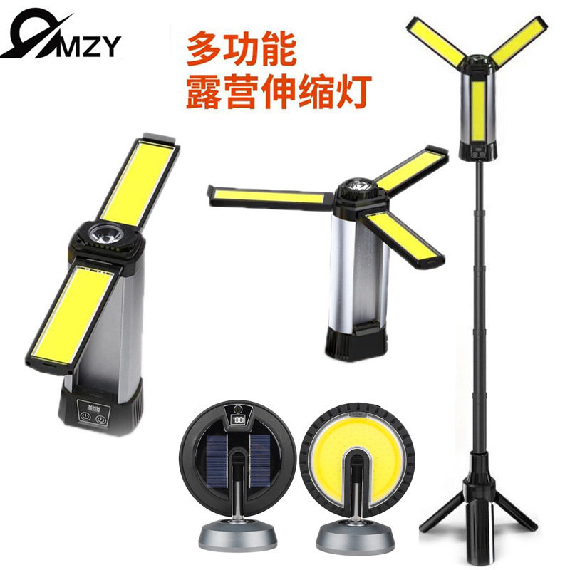 クロスボーダー强い光の3叶のCOBキャンプライトマグネット付き出力可能折りたたみスタンド多机能屋外作业ライトled