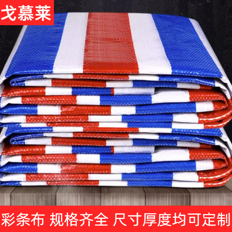 彩条布雨布单覆膜货场篷布批发防晒三色布塑料防雨布防水耐晒篷布