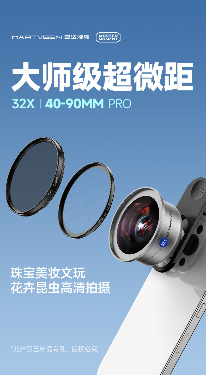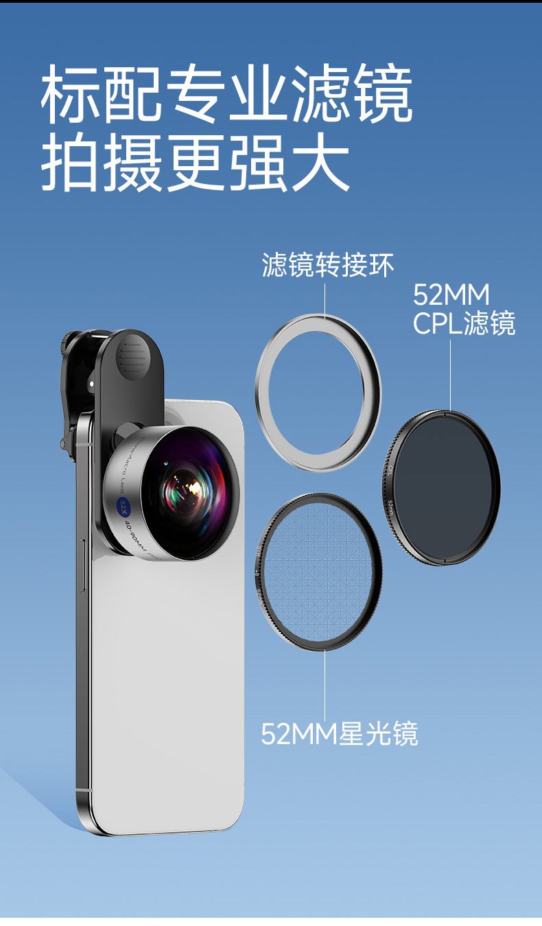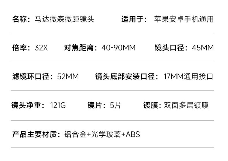 【付属品】CPLフィルター+スターフィルター+金属製アダプターリング(レンズのみ、クリップは付属しません),32Xマクロレンズ