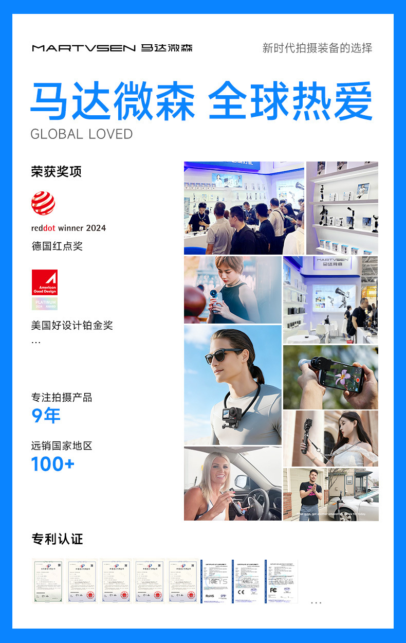 メーカー製 首掛けスマホスタンド GOPRO DJI ショットストーン 第一人称視点撮影スタンド vlog 首掛けスマホホルダー