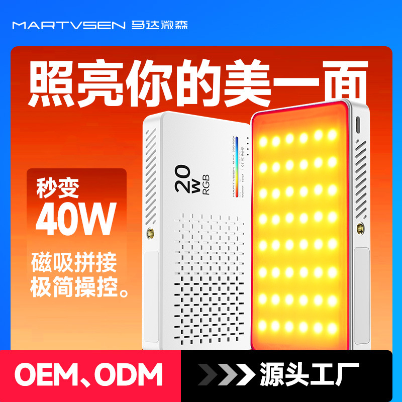 ポータブルフルカラー磁気RGB補助光 撮影用補助光 スマホカメラ補助光 ライブ配信用屋外ポケットライト